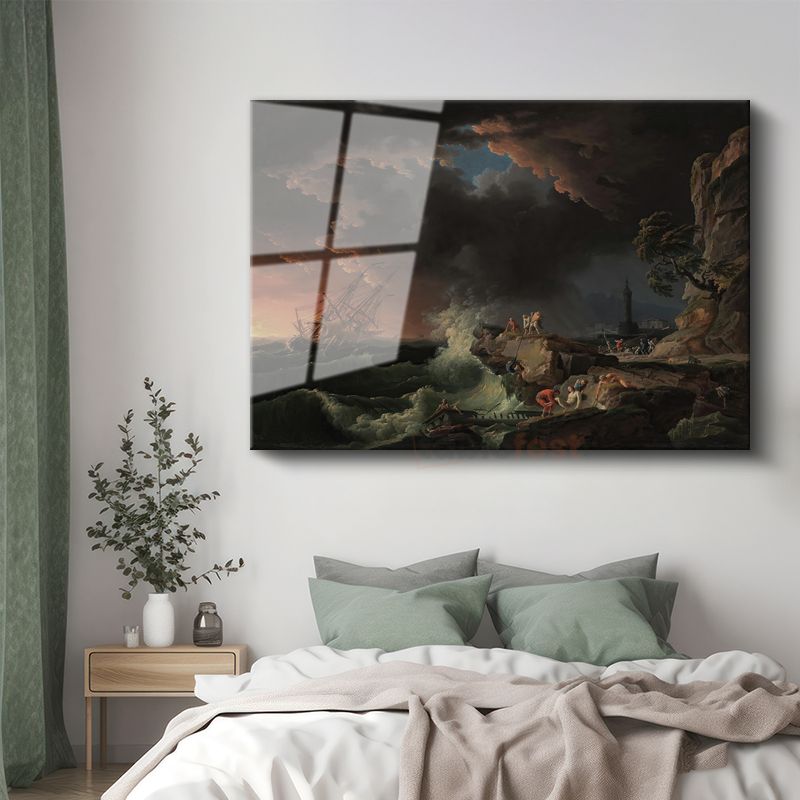 Claude-Joseph Vernet - Fırtınalı Denizde Gemi Kazası Cam Tablo