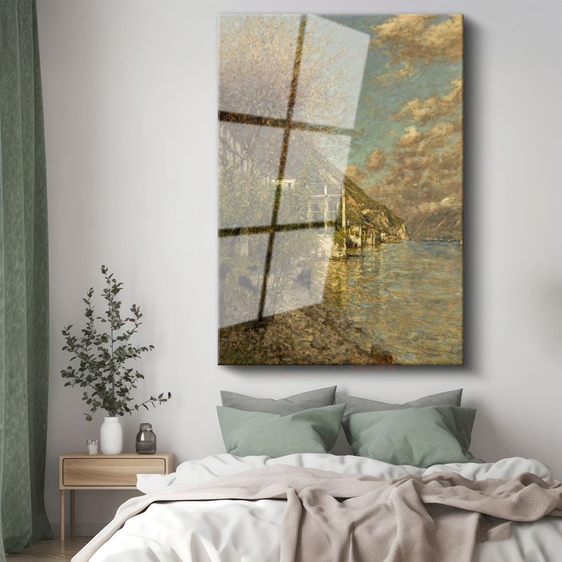Claude Monet - Göl Kenarı Manzarası Cam Tablo