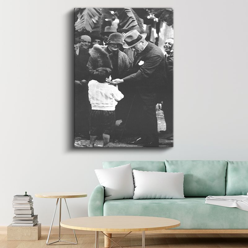 Çocuklarla Atatürk - Şapkalı Tarihi Anı Kanvas Tablo