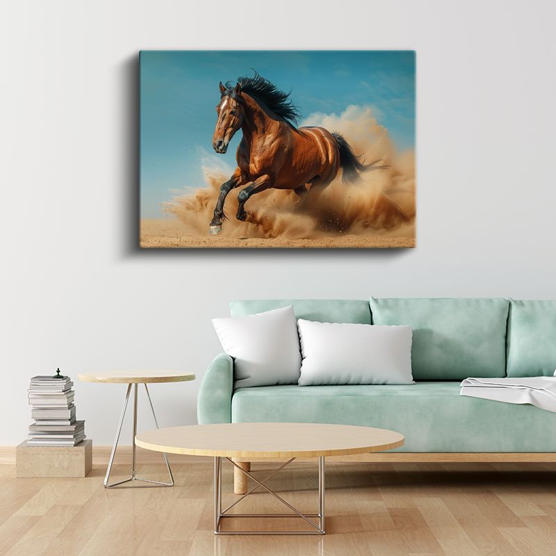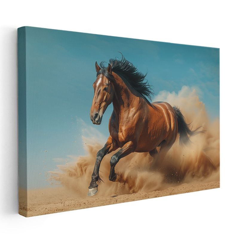Çöl Atı - Kumda Güçlü Koşu Kanvas Tablo