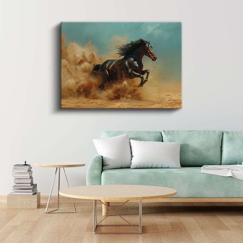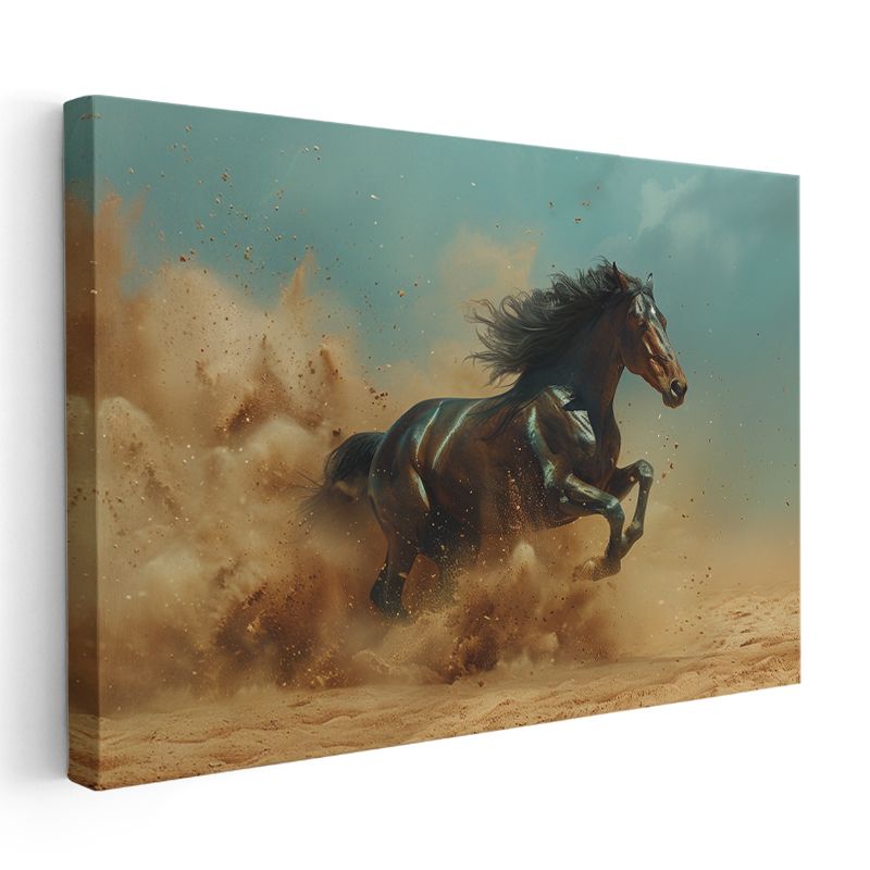 Çöl Atı - Kumda Güçlü Koşu Kanvas Tablo