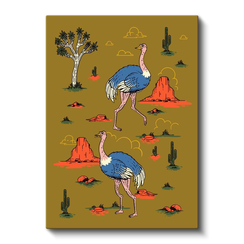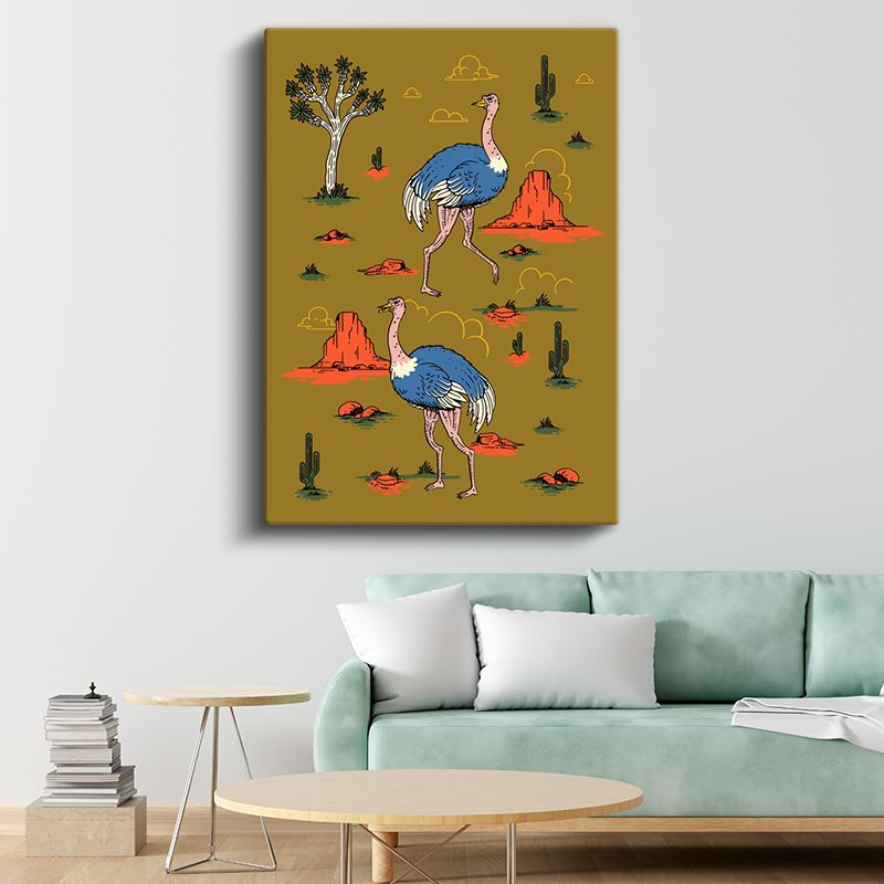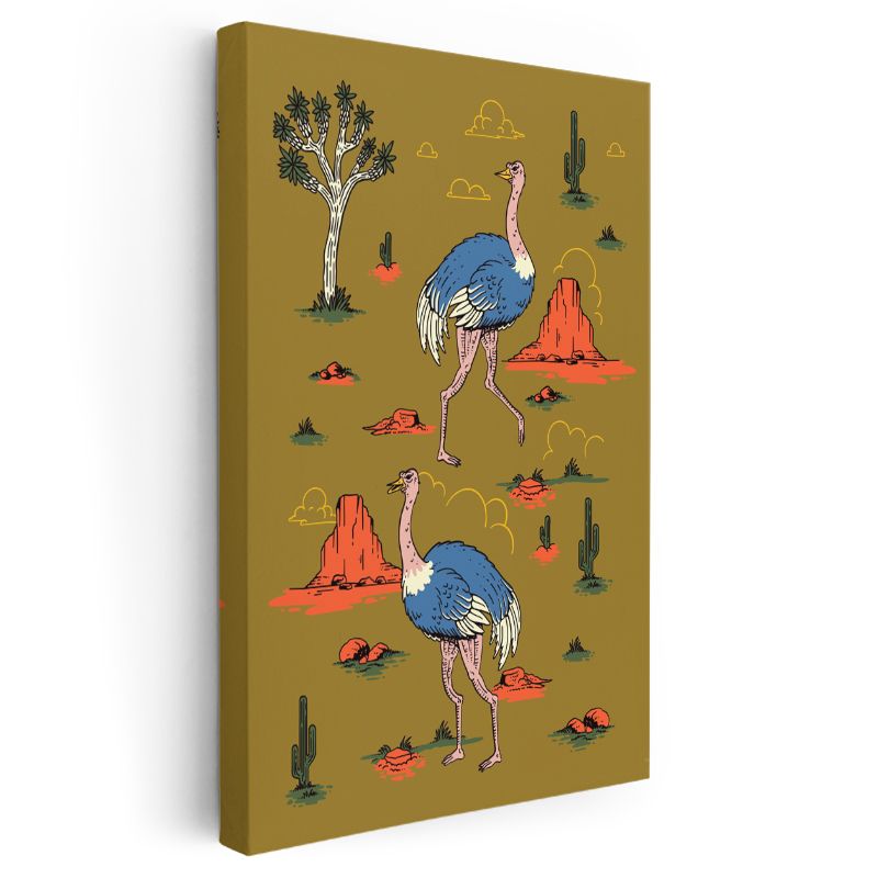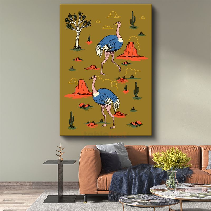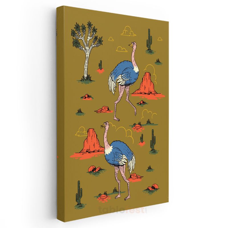 Çöl Devekuşları - Hardal Sarısı Vahşi Doğa Kanvas Tablo