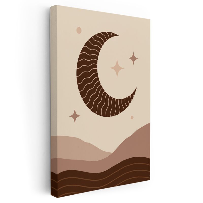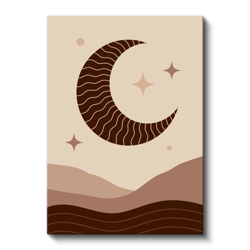 Çöl Gecesi - Dalgalı Minimalist Ay ve Yıldız Kompozisyonu Kanvas Tablo