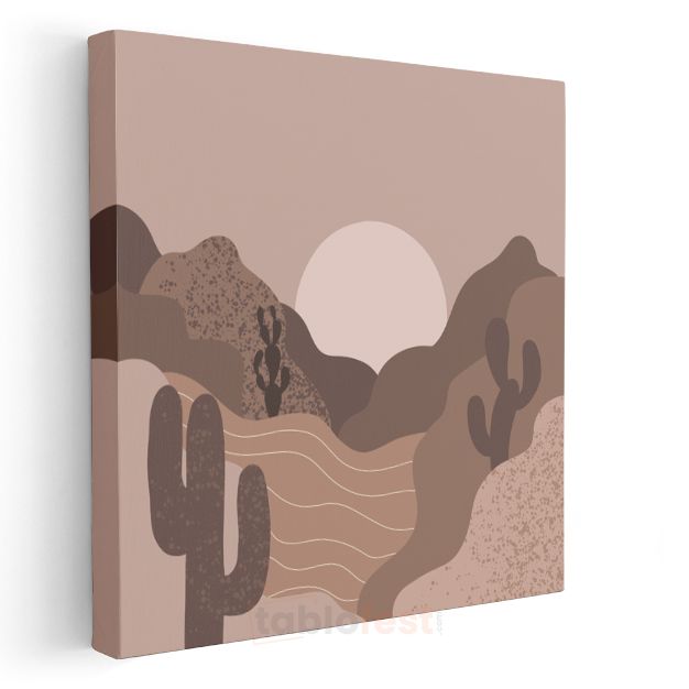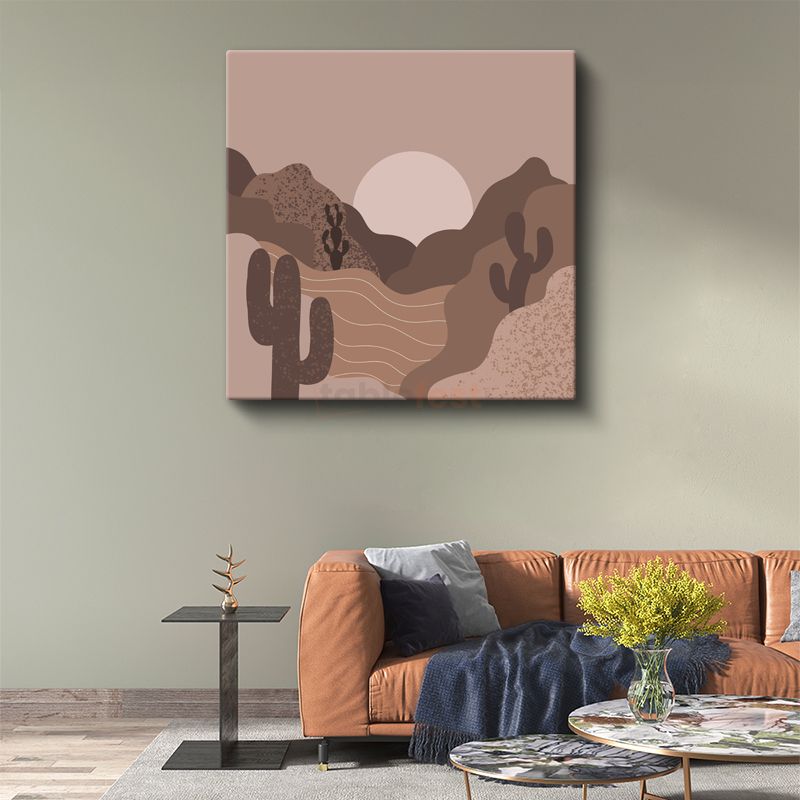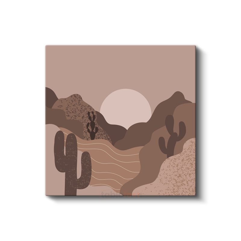 Çöl Huzuru - Minimalist Kaktüs Manzarası Kanvas Tablo