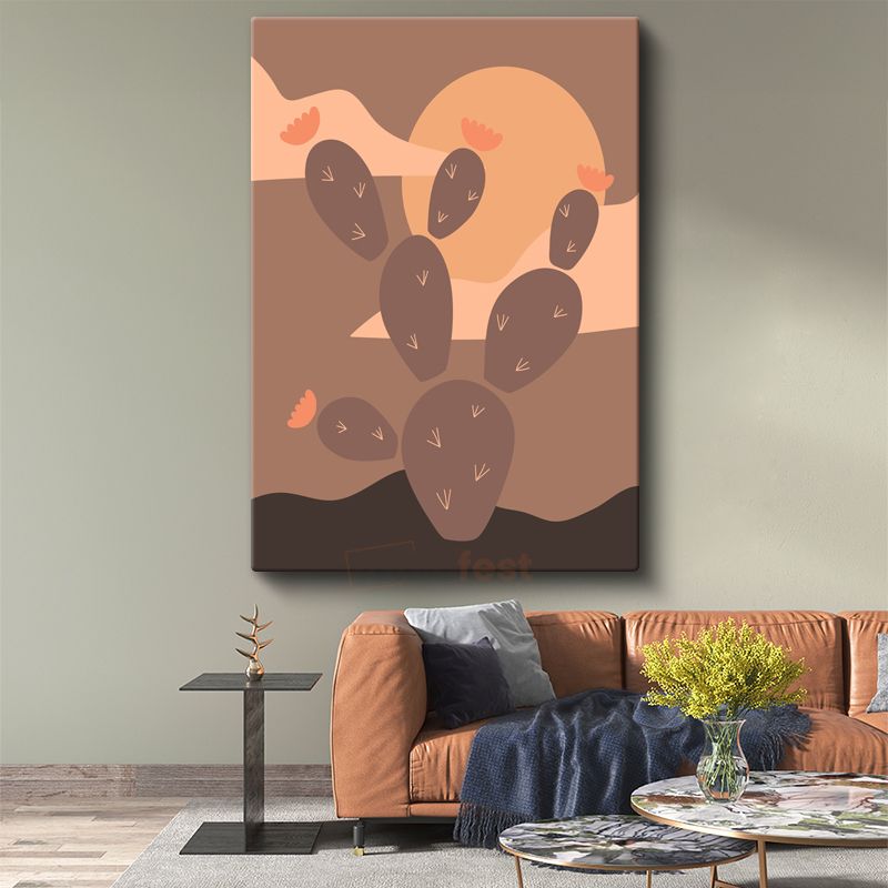 Çöl Kaktüsü - Toprak Tonlarında Minimalist Doğa Kanvas Tablo