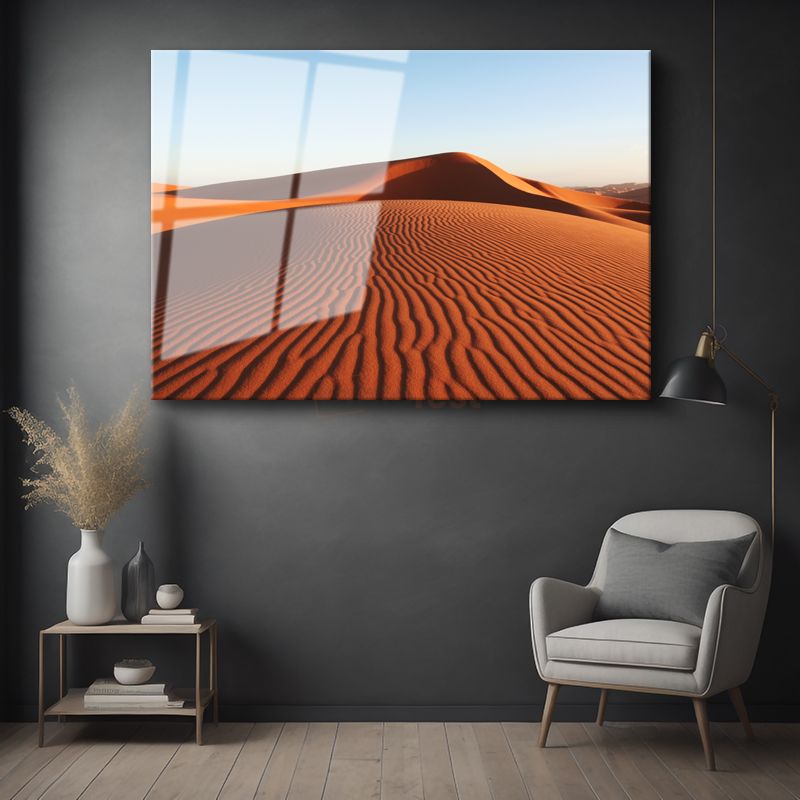 Çöl Kumları - Gün Batımında Kızıla Bürünen Kum Tepeleri Cam Tablo