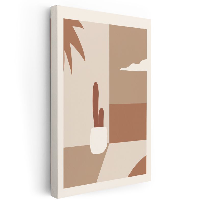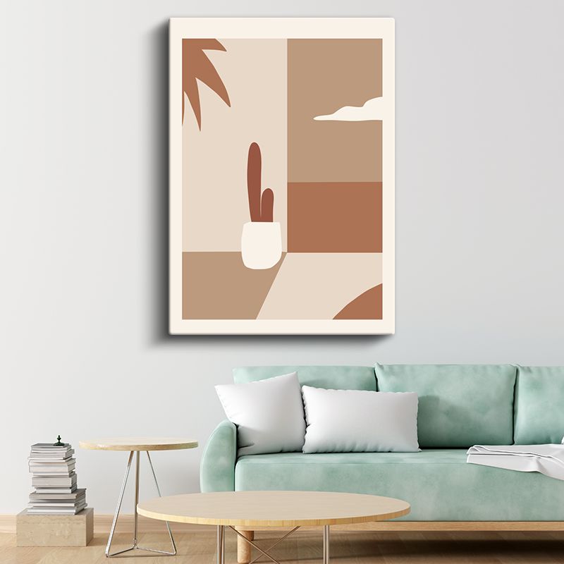 Çöl Minimalizmi - Geometrik Kaktüs Kompozisyonu Kanvas Tablo