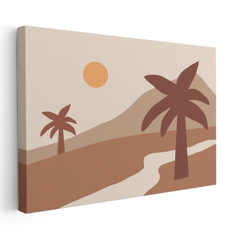 Çöl Silueti - Minimalist Palmiye Vektörel Kanvas Tablo