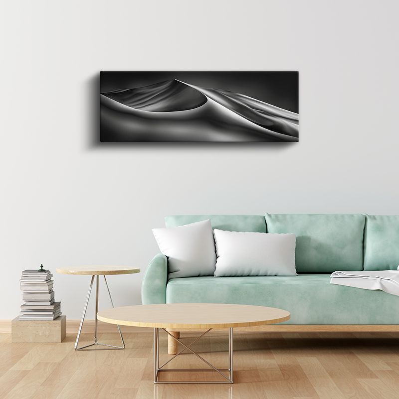 Çöl Silueti - Minimalist Siyah Beyaz Kum Tepeleri Kanvas Tablo