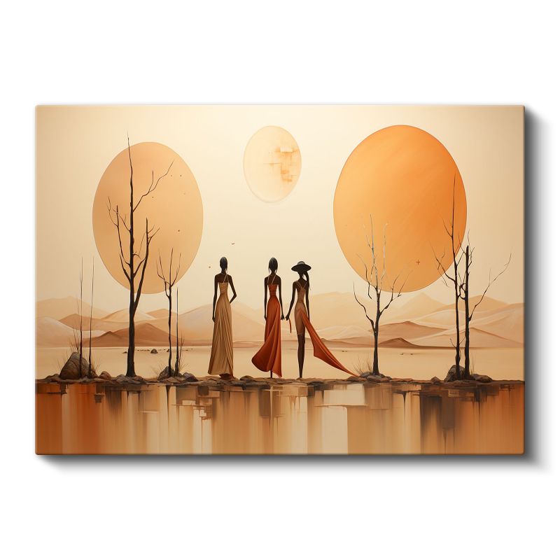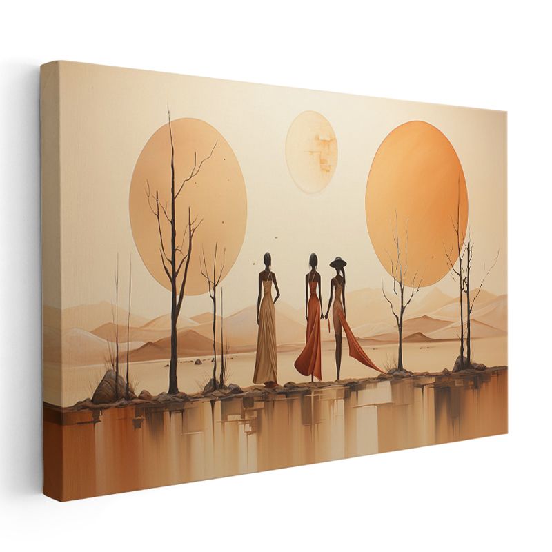 Çöl Siluetleri - Minimalist Figürler Yansımalı Kanvas Tablo