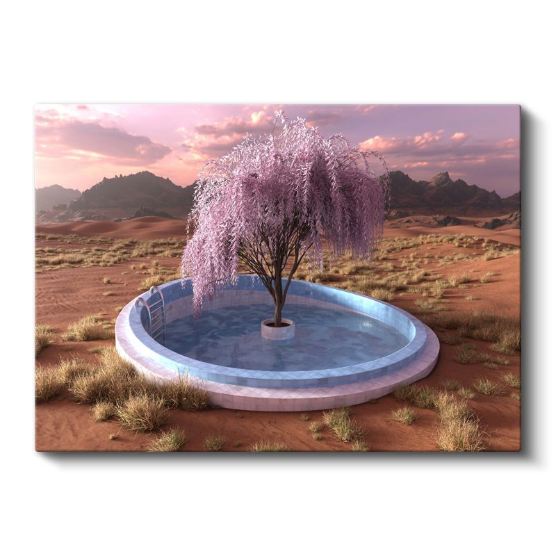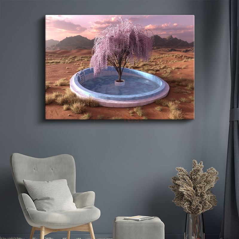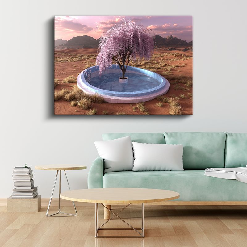 Çöl Vahası - Kurak Topraklarda Açan Pembe Yaşam Kanvas Tablo