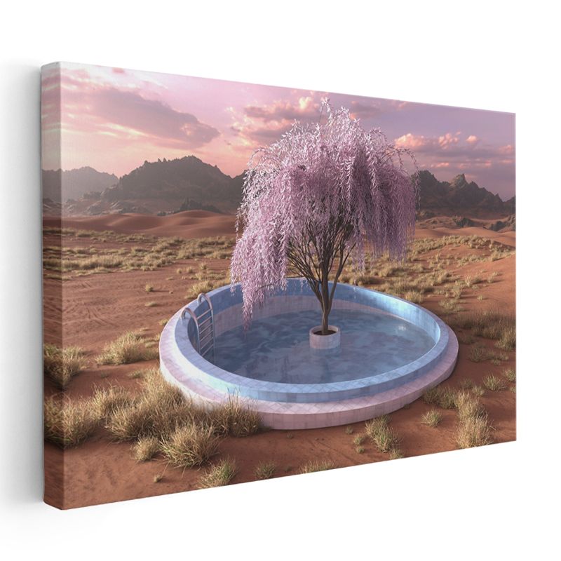 Çöl Vahası - Kurak Topraklarda Açan Pembe Yaşam Kanvas Tablo