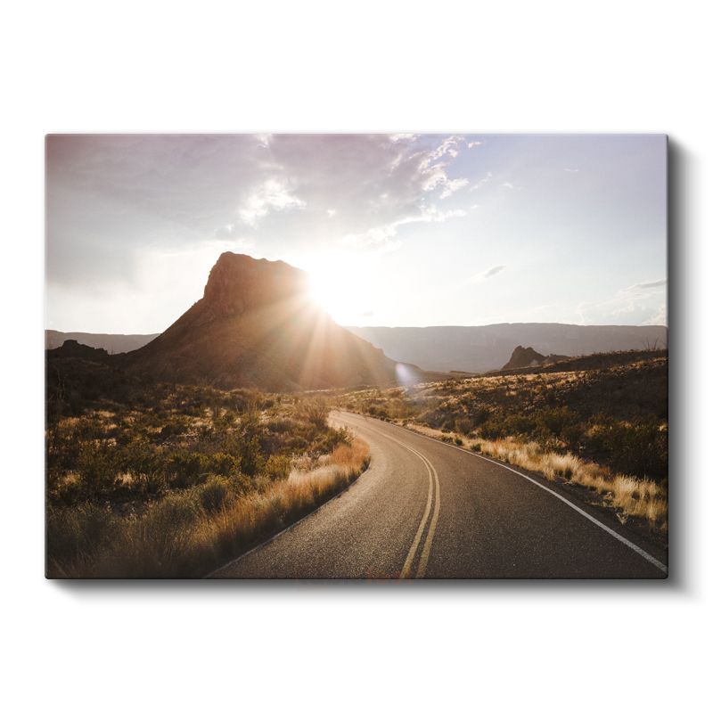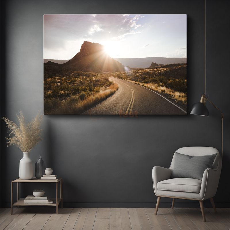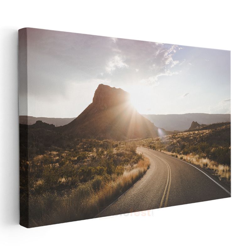 Çöl Yolu - Gün Doğumunda Altın Işıklar Kanvas Tablo