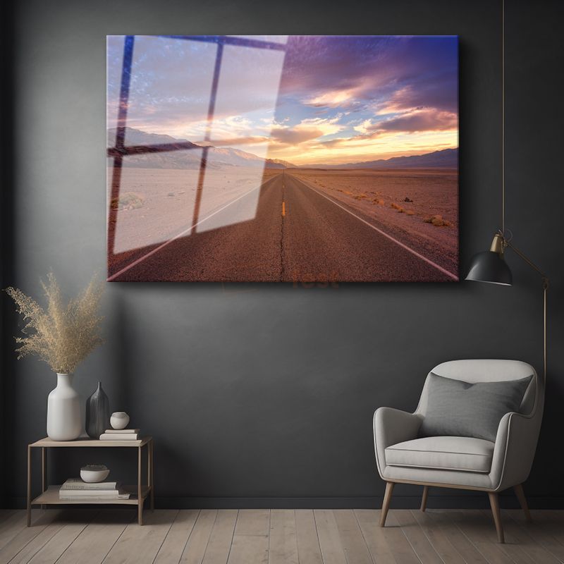 Çöl Yolu - Renkli Gökyüzü Altında Cam Tablo