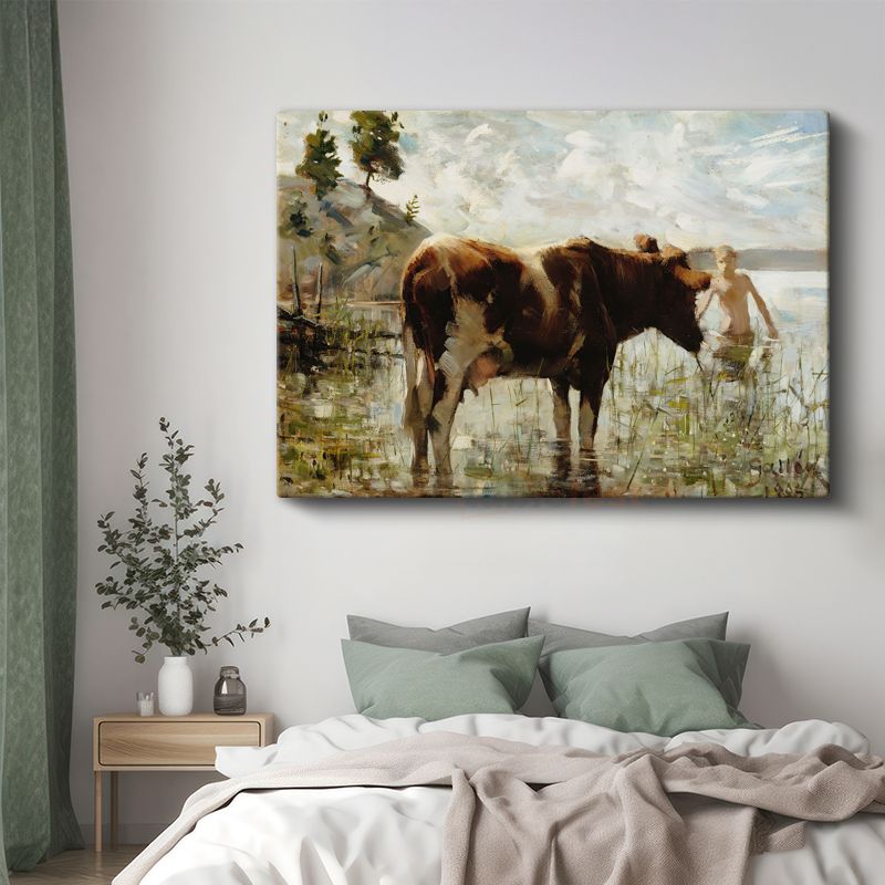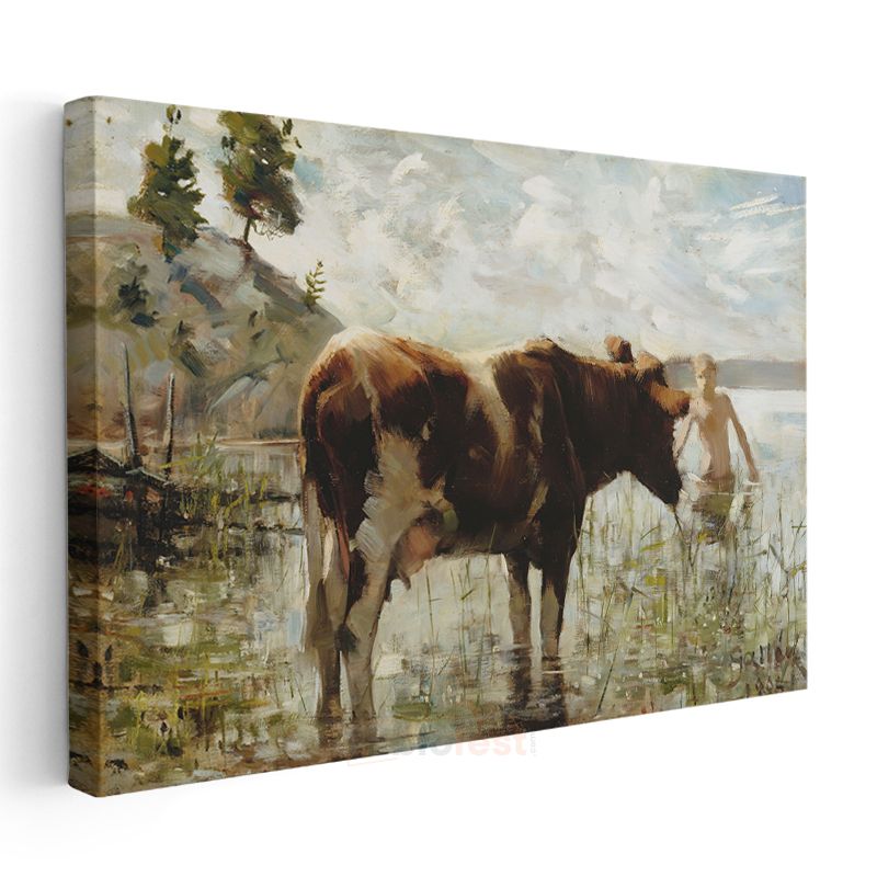 Constant Troyon - Suda İnek Kanvas Tablo