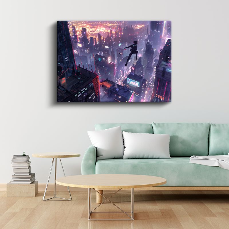 Cyberpunk Atlayış - Gece Şehri Anime Kanvas Tablo