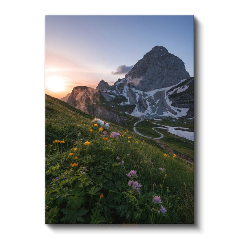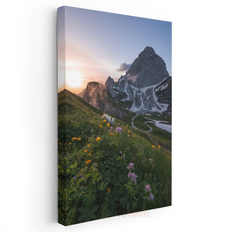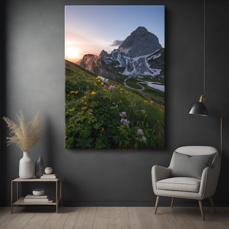 Dağ Çiçekleri - Görkemli Zirve Eteklerinde Bahar Çiçekleri Kanvas Tablo