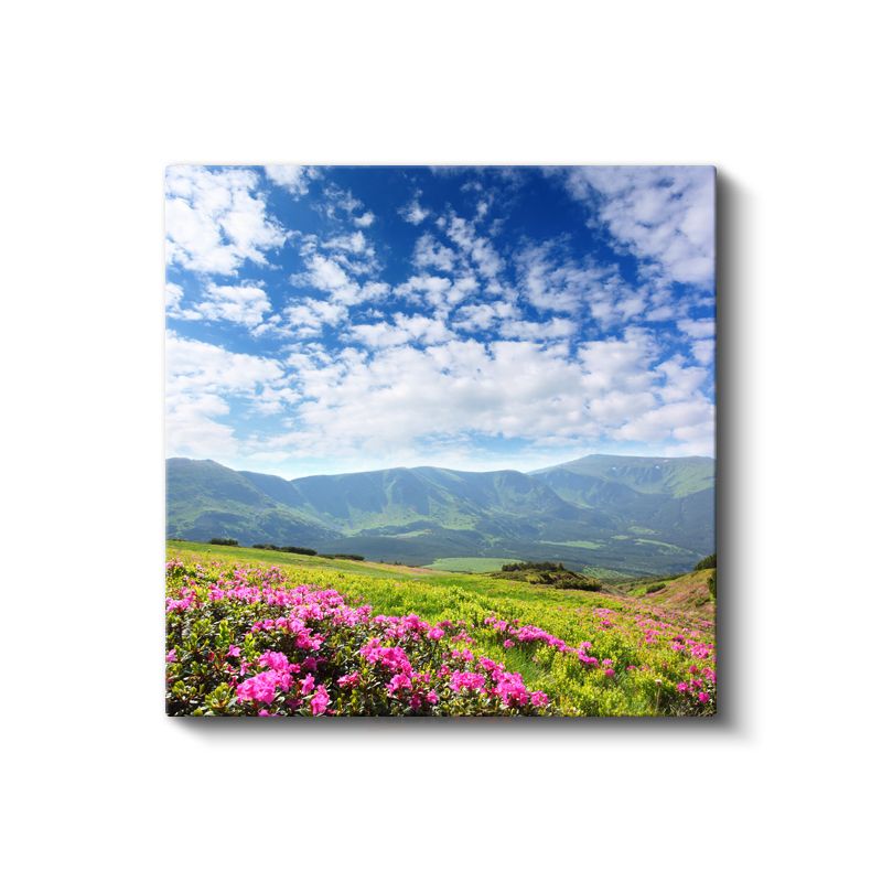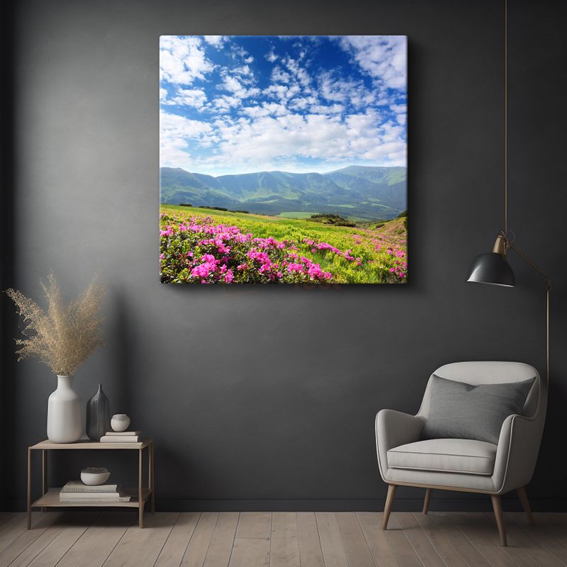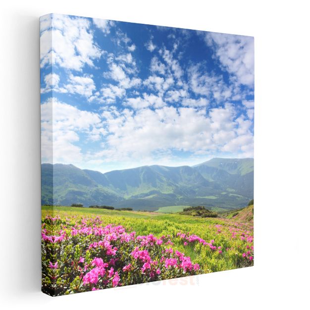 Dağ Çiçekleri - Pembe Çiçekli Yamaç Manzarası Kanvas Tablo