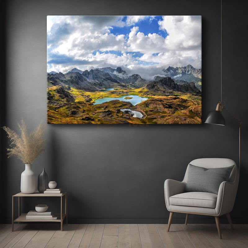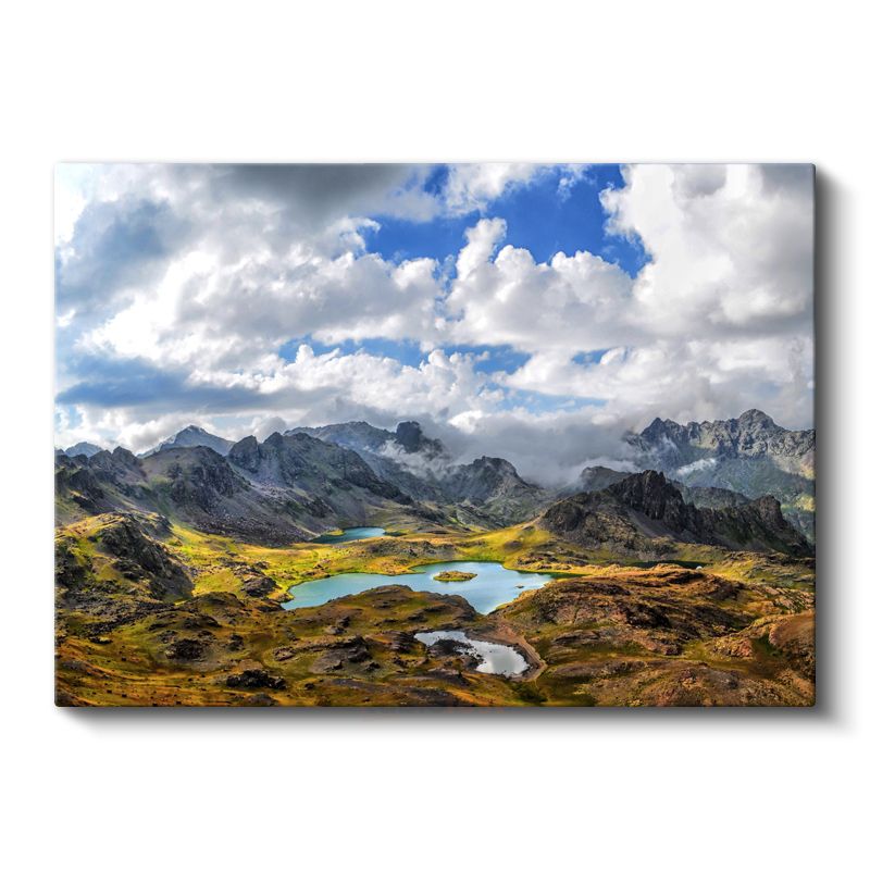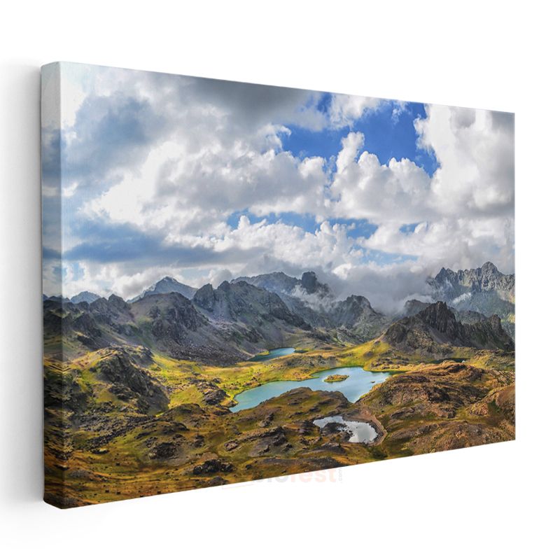 Dağ Gölü - Bulutların Arasından Yükselen Zirveler Kanvas Tablo