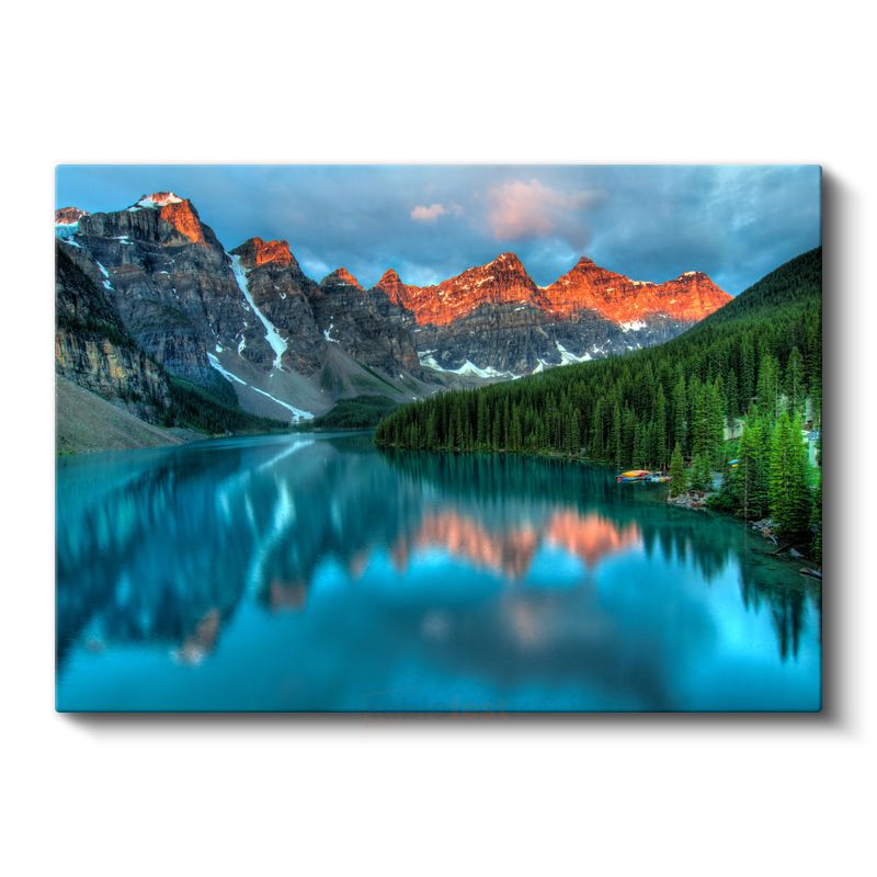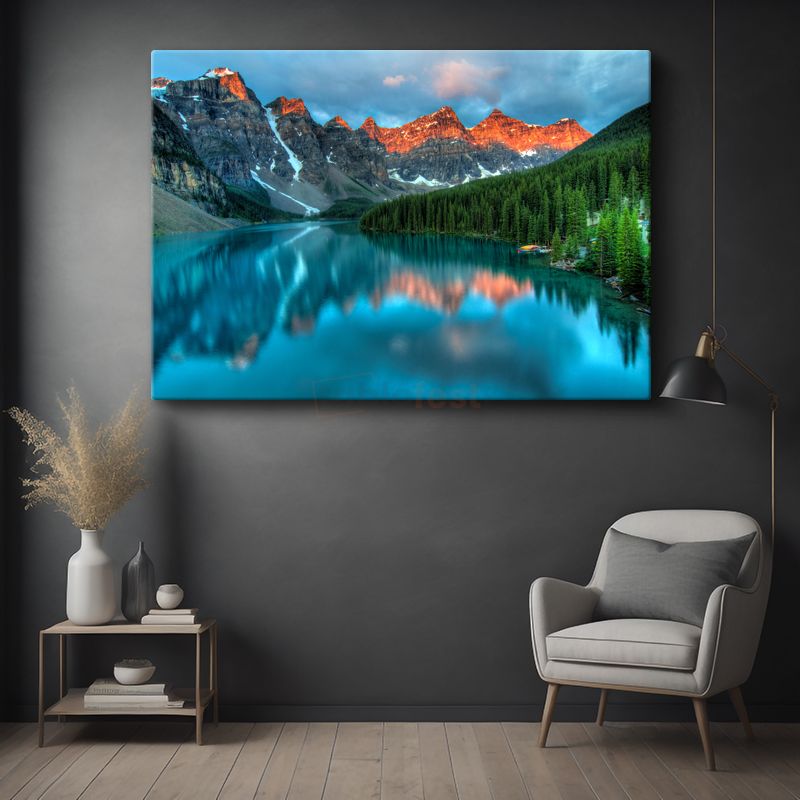 Dağ Gölü - Gün Batımında Yansıyan Zirveler Kanvas Tablo