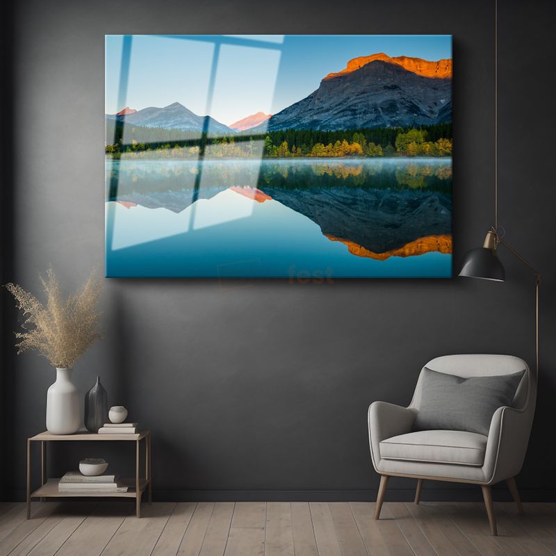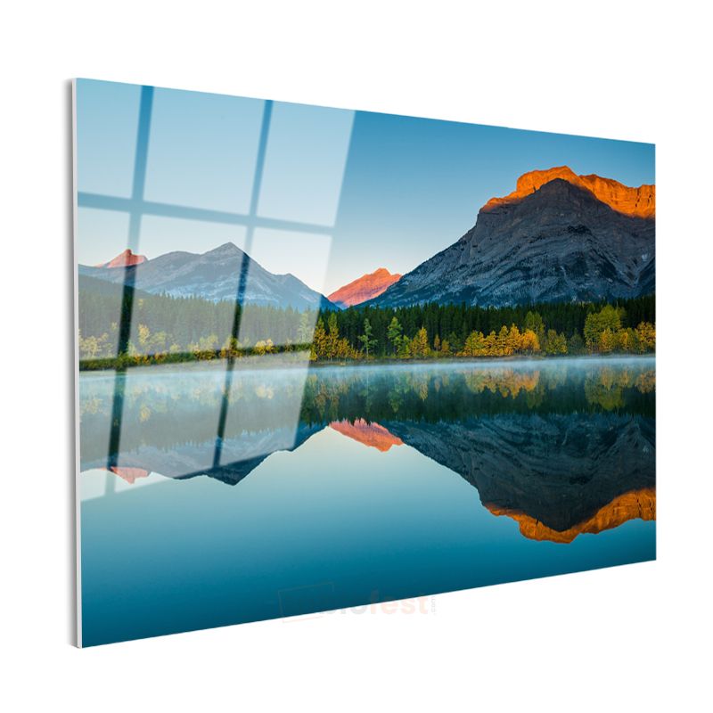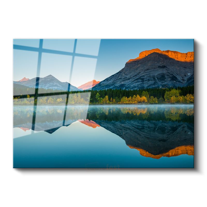 Dağ Gölü - Gün Doğumunda Altın Yansımalar Cam Tablo