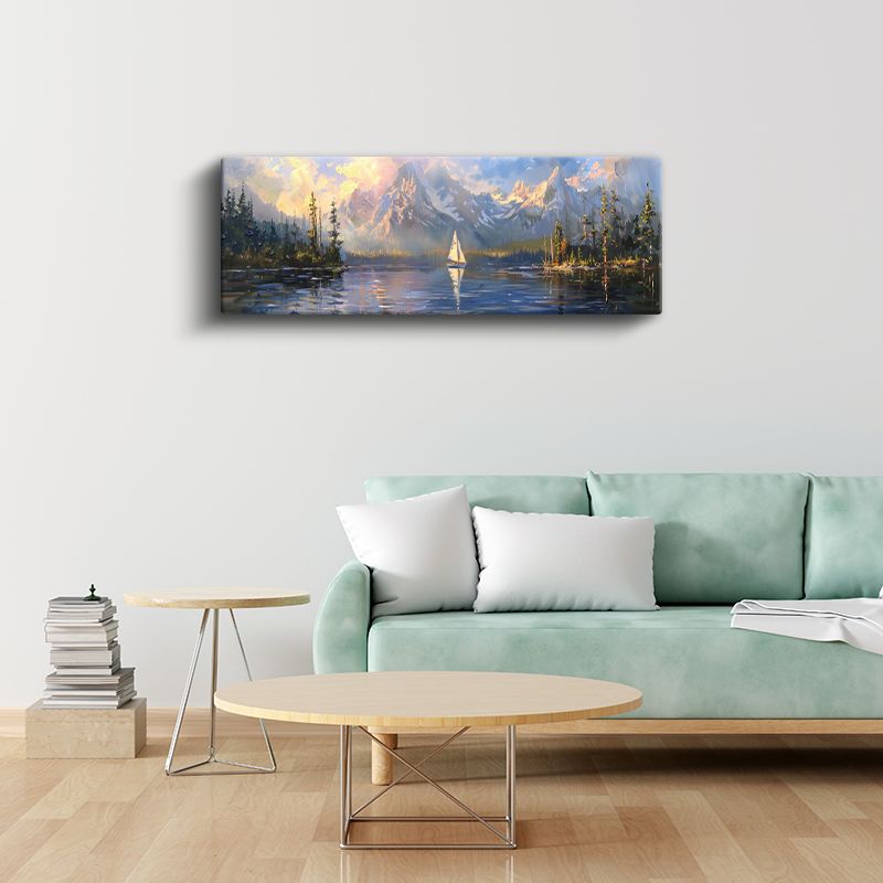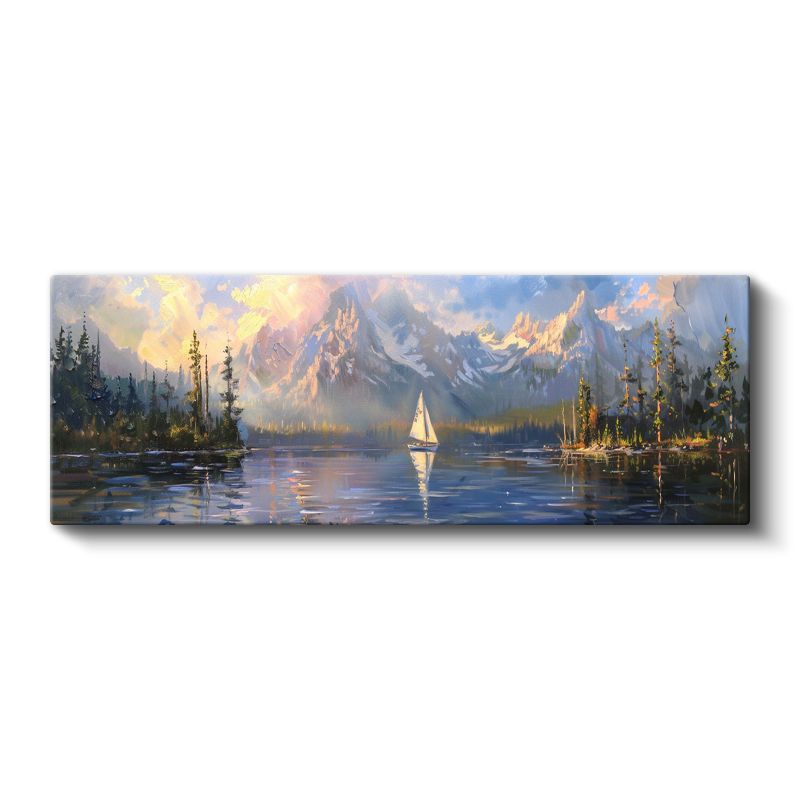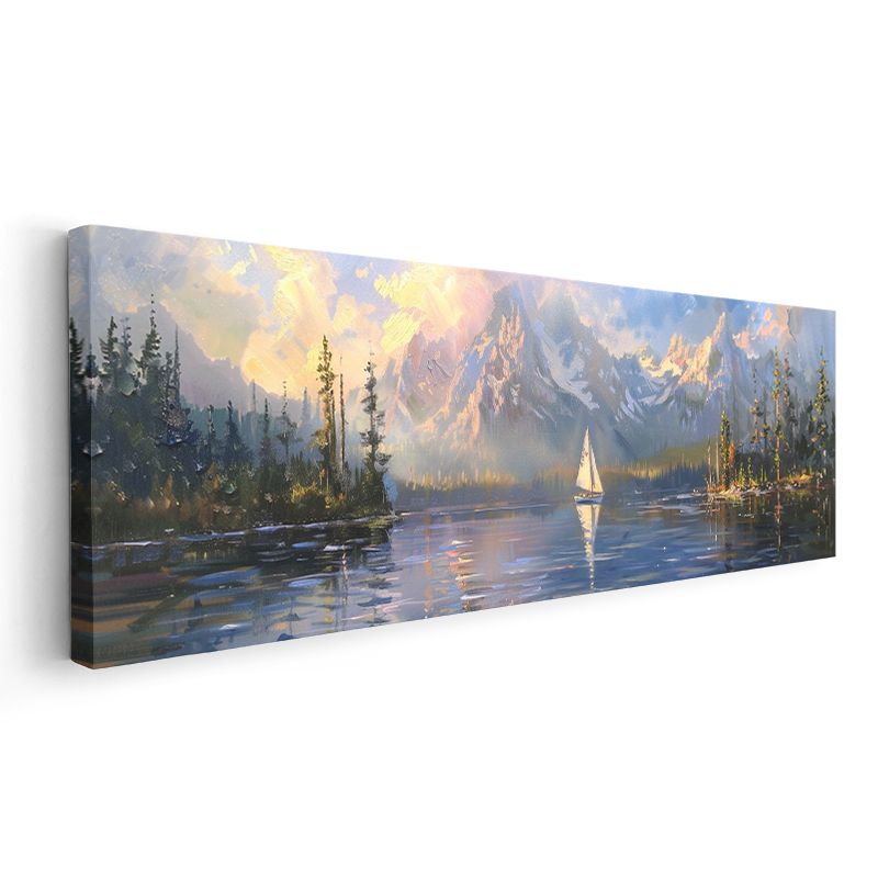 Dağ Gölü - Karlı Zirveler Arasında Yelkenli Yolculuğu Kanvas Tablo