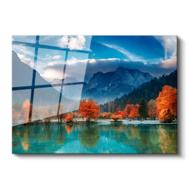 Dağ Gölü - Sonbahar Renklerinde Huzur Dolu Manzara Cam Tablo