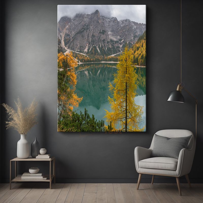 Dağ Gölü - Sonbaharın Altın Yansımaları Kanvas Tablo
