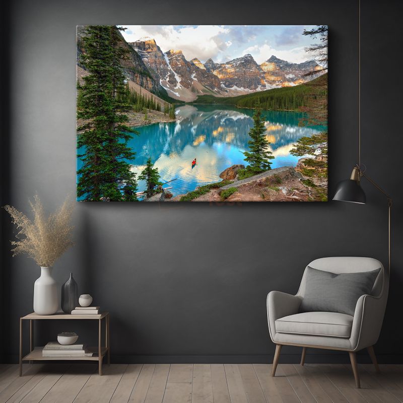 Dağ Gölü - Turkuaz Suda Kano Yolculuğu Kanvas Tablo