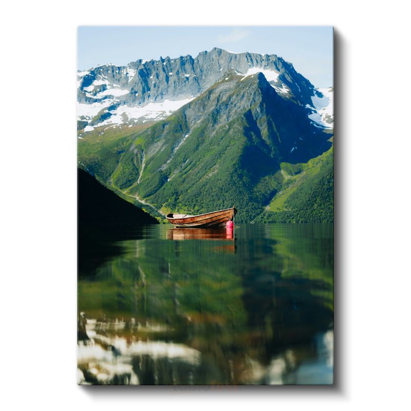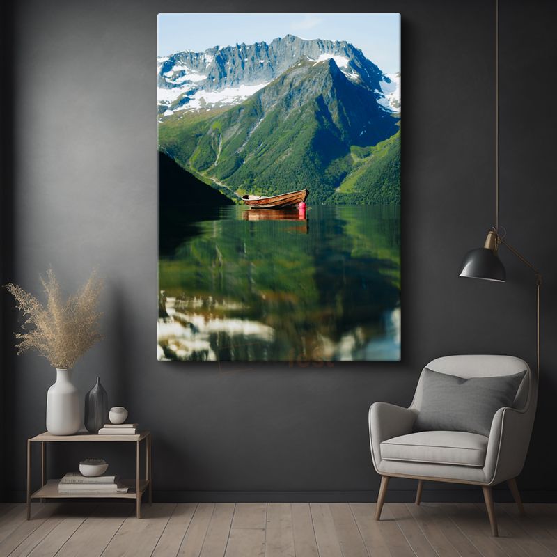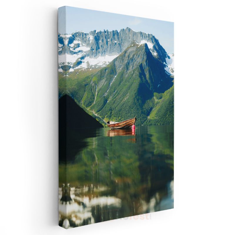 Dağ Gölü - Yalnız Tekne Manzarası Kanvas Tablo