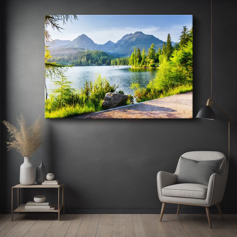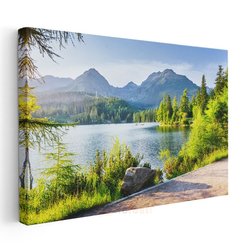 Dağ Gölü - Yemyeşil Orman Manzarası Kanvas Tablo