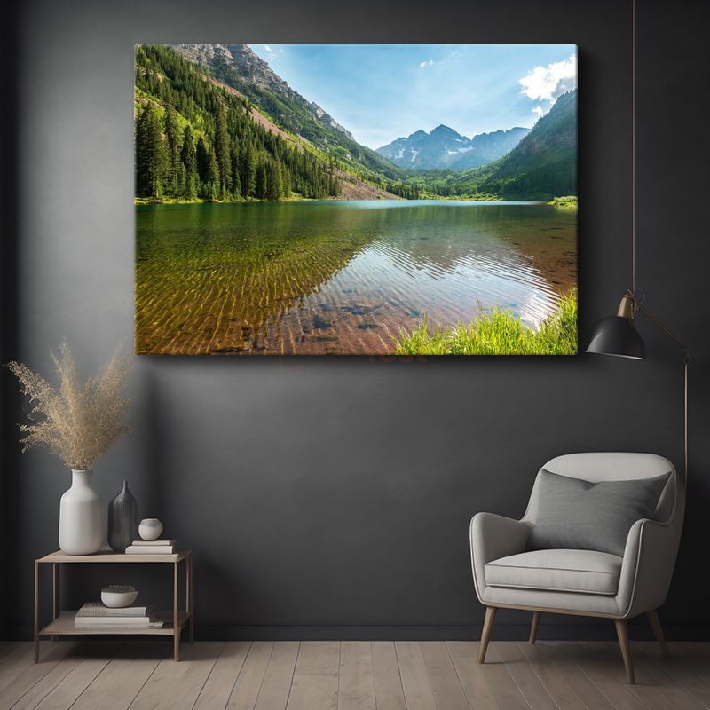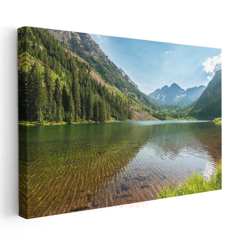 Dağ Gölü - Yemyeşil Ormanlar Arasında Berrak Sular Kanvas Tablo