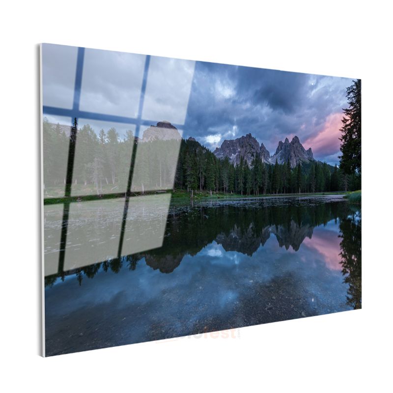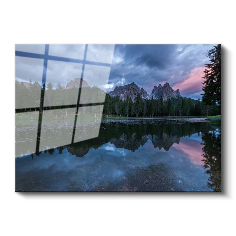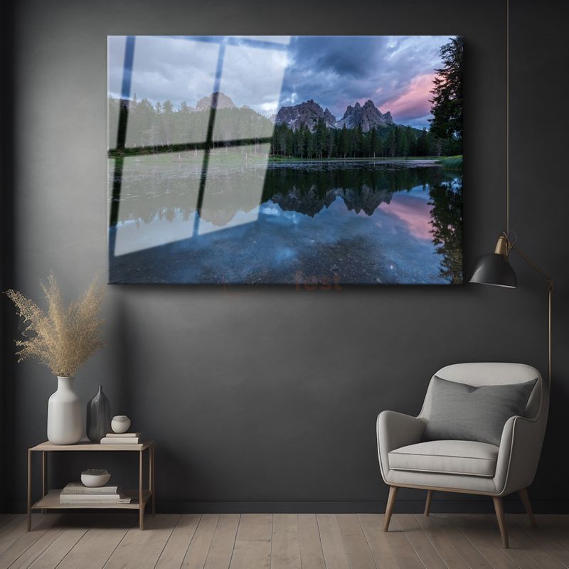 Dağ Gölü - Zirvelerden Yansıyan Huzur Verici Manzara Cam Tablo