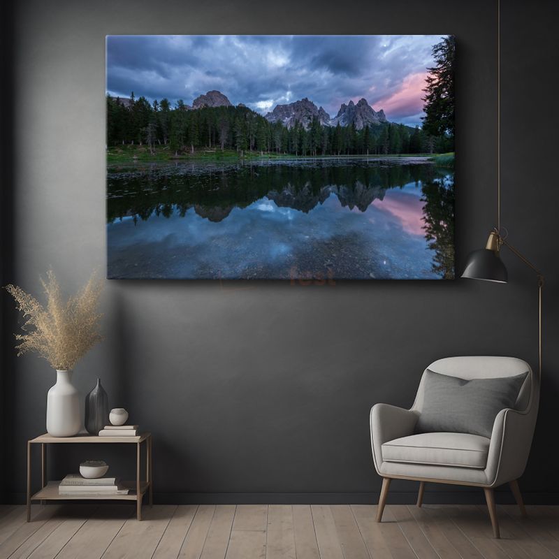 Dağ Gölü - Zirvelerden Yansıyan Huzur Verici Manzara Kanvas Tablo