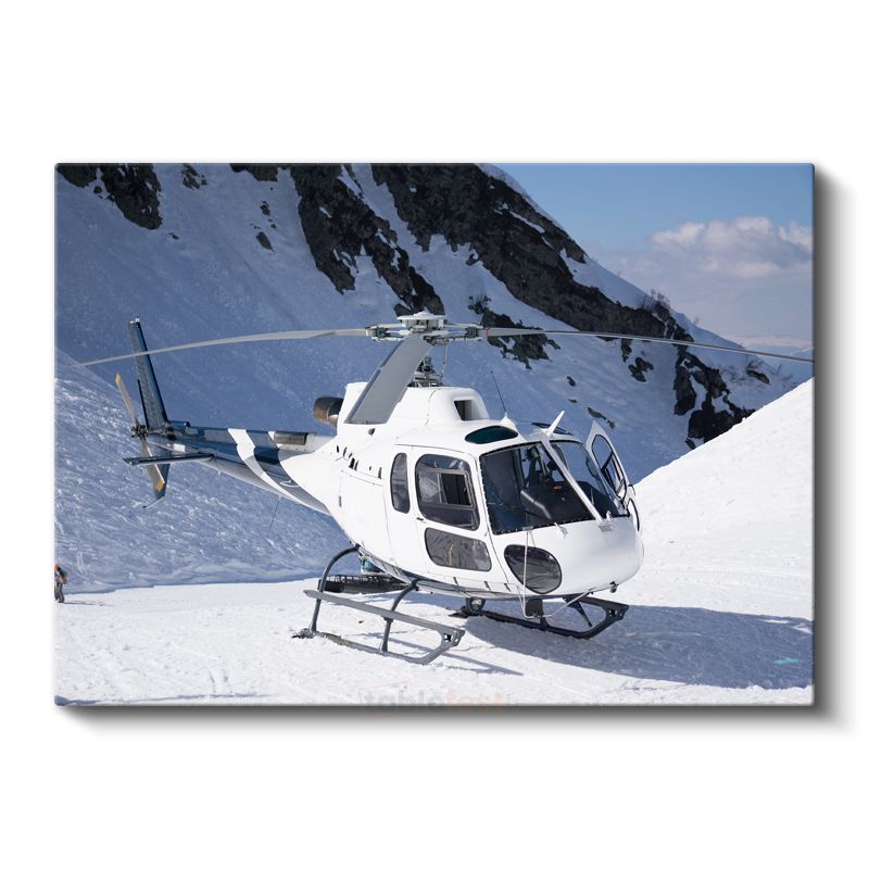 Dağ Helikopteri - Karlı Zirvelerde Beyaz Helikopter Kanvas Tablo