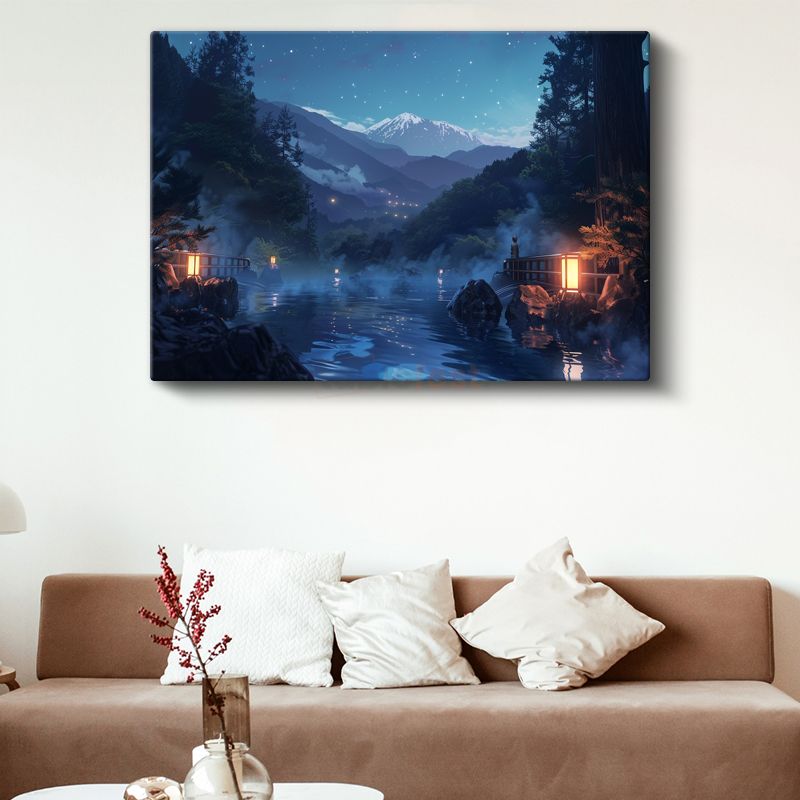 Dağ Kaplıcası - Yıldızlı Gökyüzü Anime Kanvas Tablo