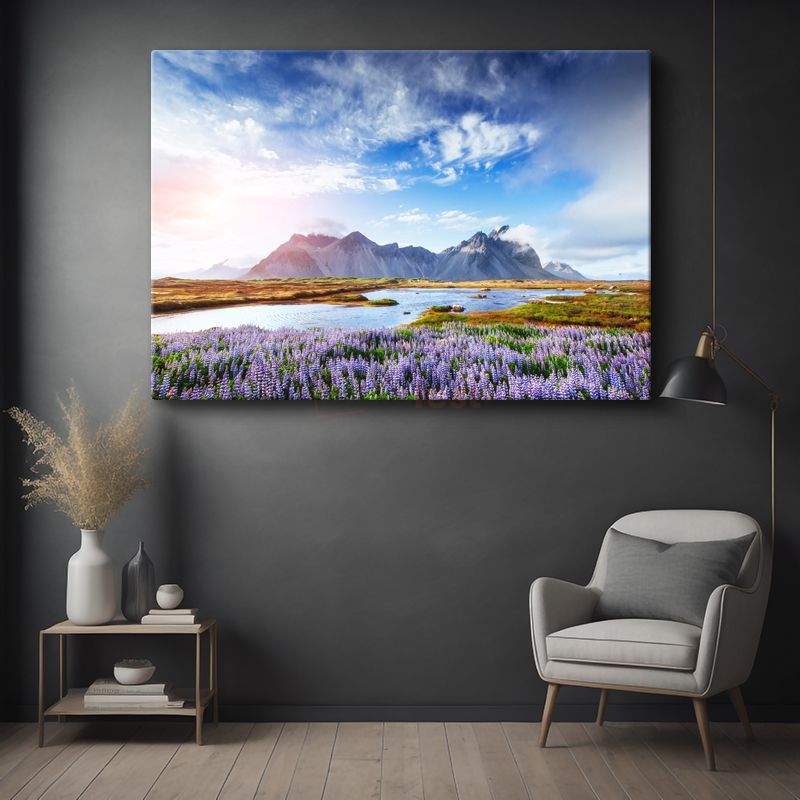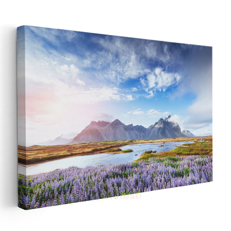 Dağ Manzarası - Mor Lavanta Tarlası Kanvas Tablo