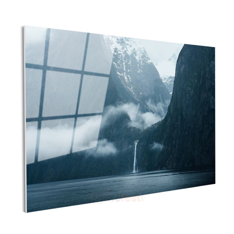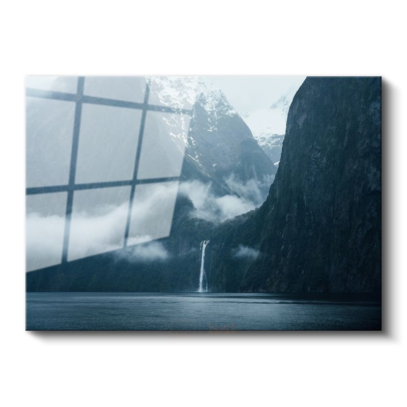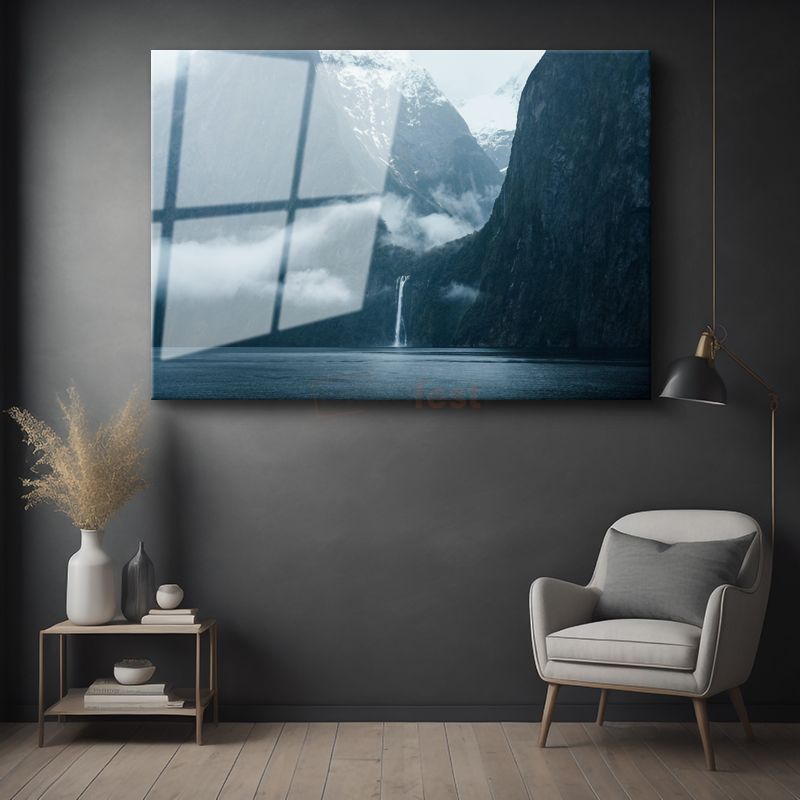 Dağ Şelalesi - Sisli Vadiler Arasında Cam Tablo