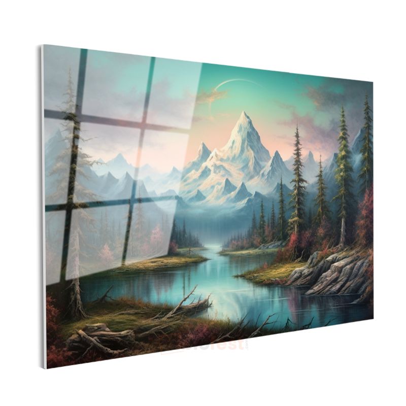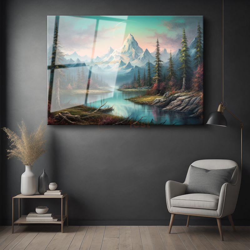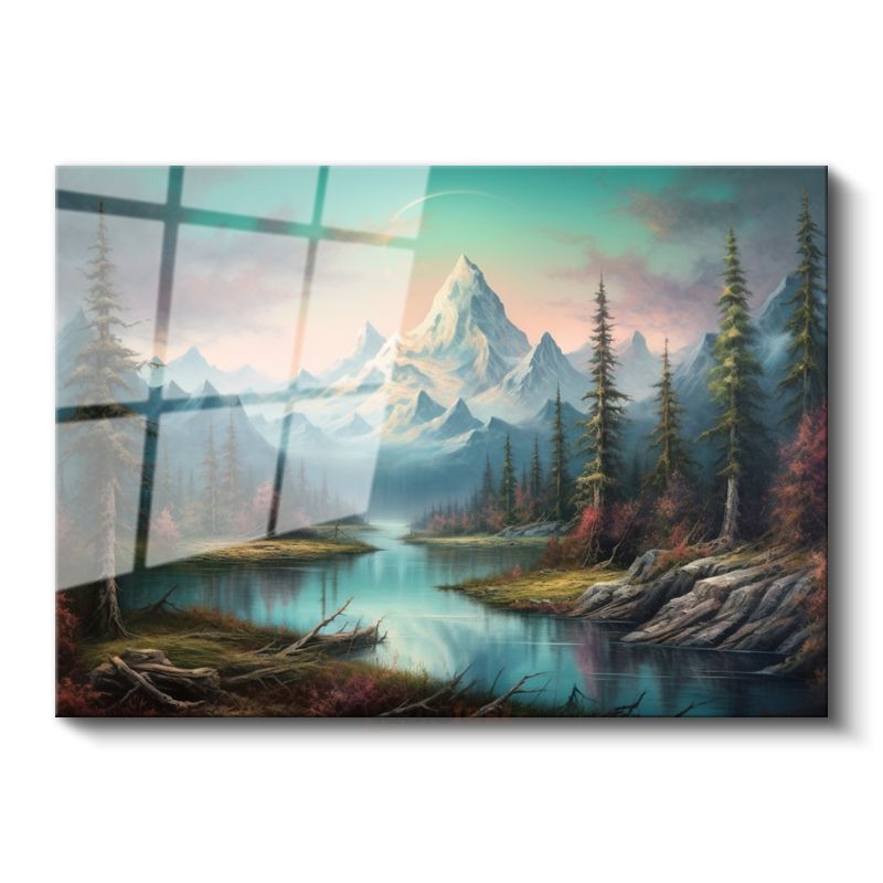 Dağ Silsilesi - Turkuaz Sular ve Çam Ormanları Cam Tablo