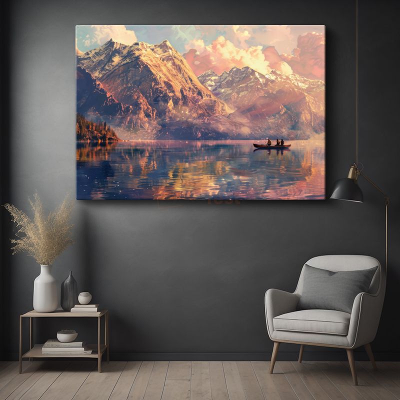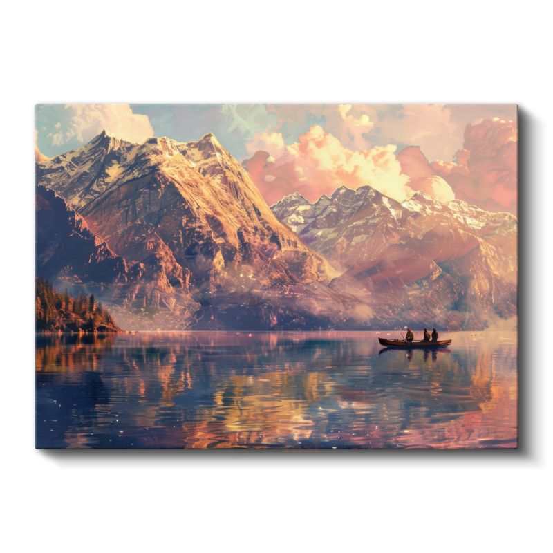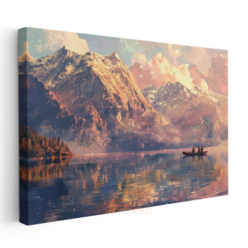 Dağ Silüeti - Göl Üzerinde Yolculuk Kanvas Tablo
