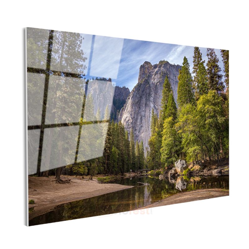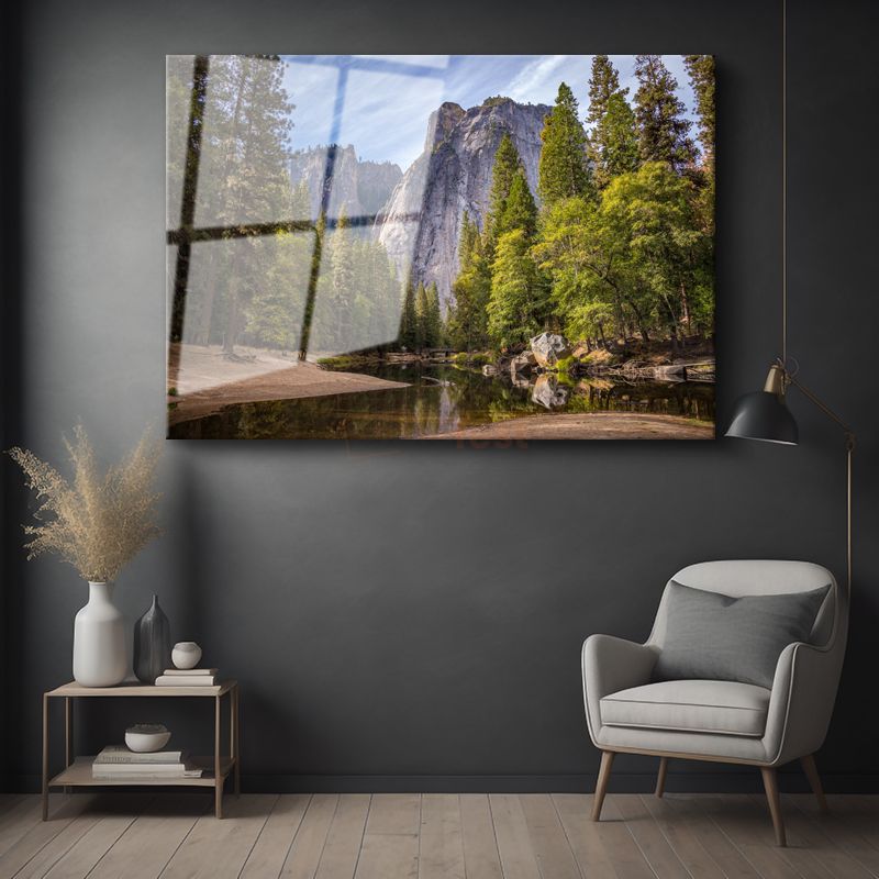 Dağ Vadisi - Orman ve Göl Manzarası Cam Tablo