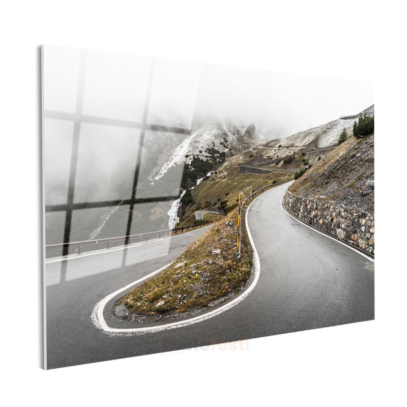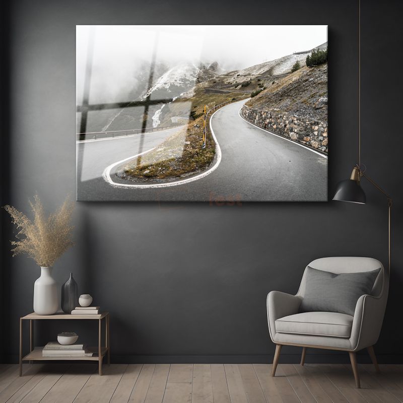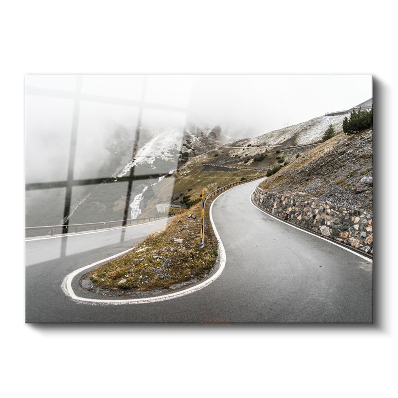 Dağ Virajları - Sisli Yüksek Rakım Yolu Cam Tablo