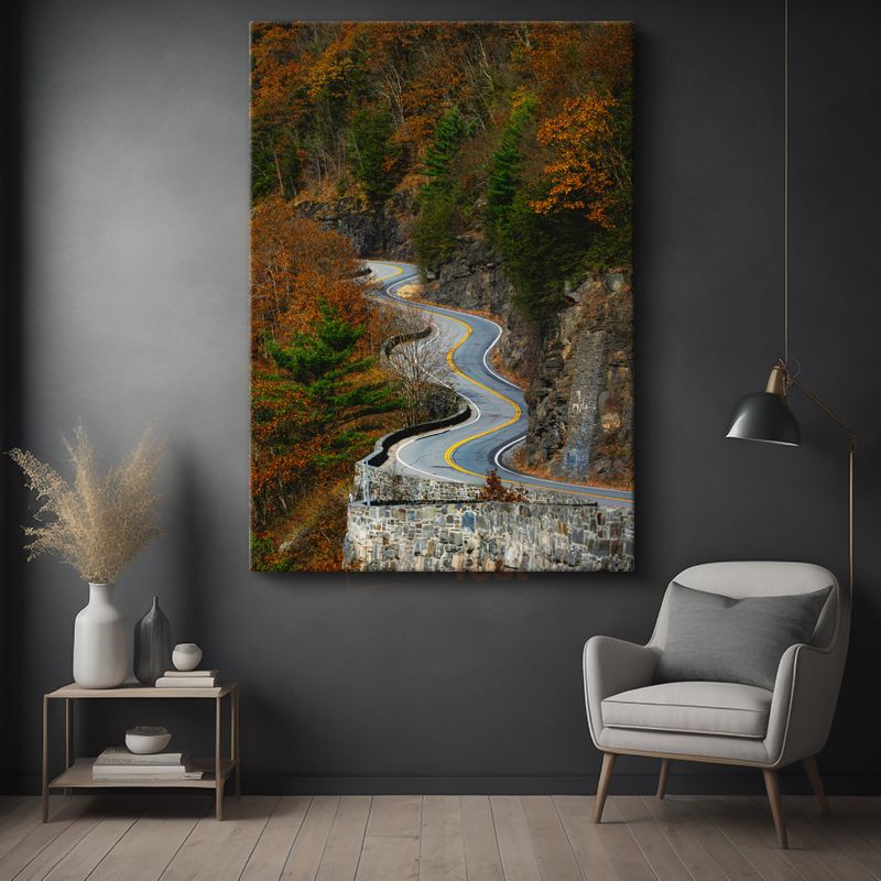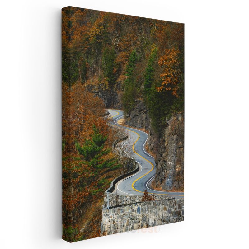 Dağ Virajları - Sonbahar Renkleriyle Bezeli Kıvrımlı Yol Kanvas Tablo