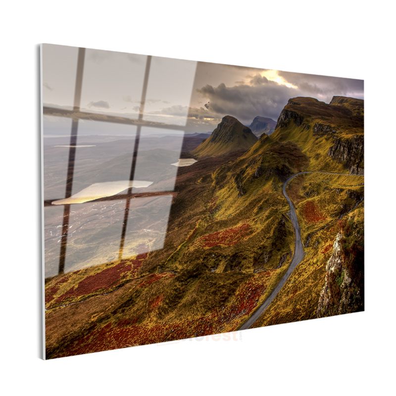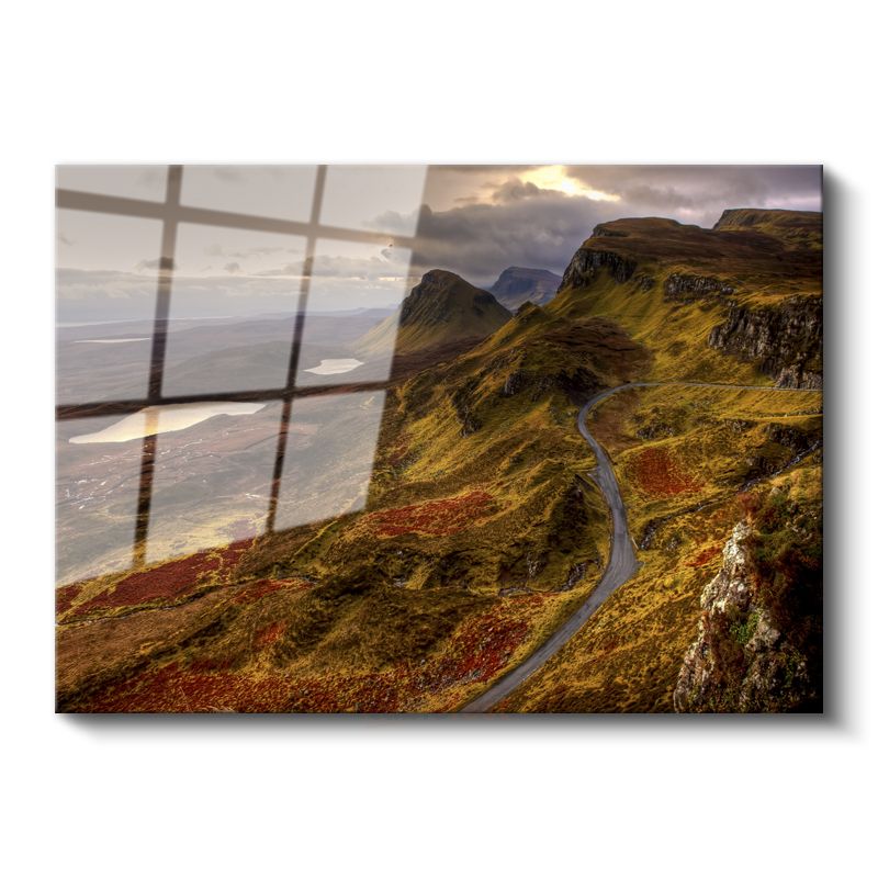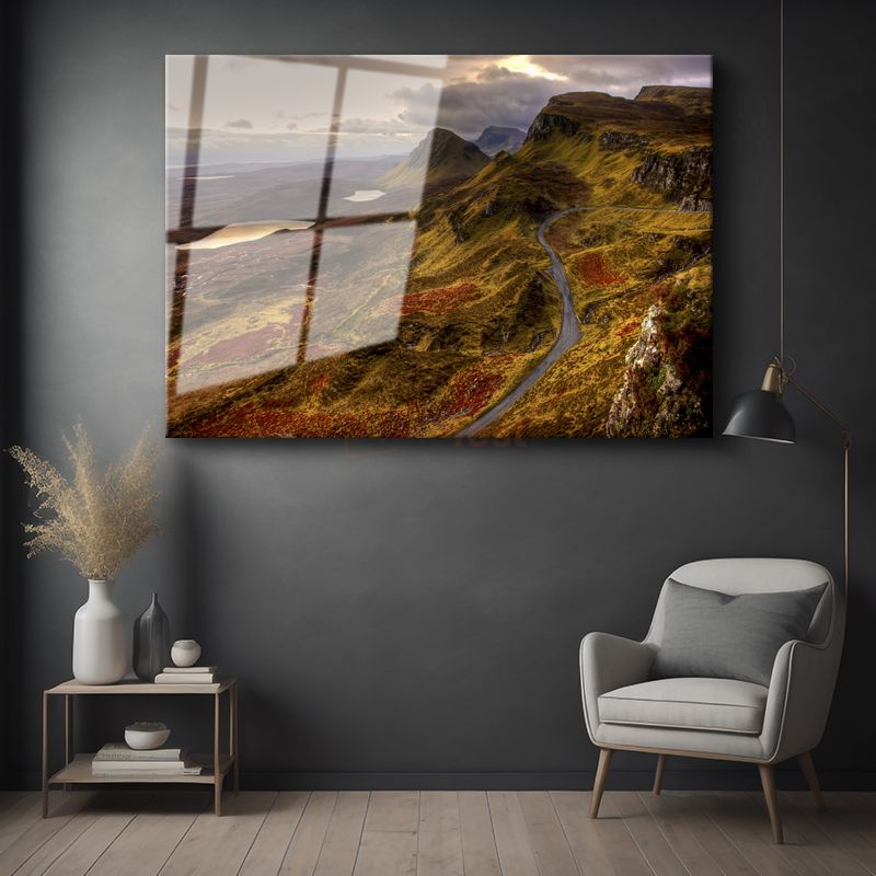Dağ Yolu - Sonbahar Renklerine Bürünmüş Tepeler Cam Tablo