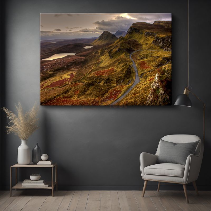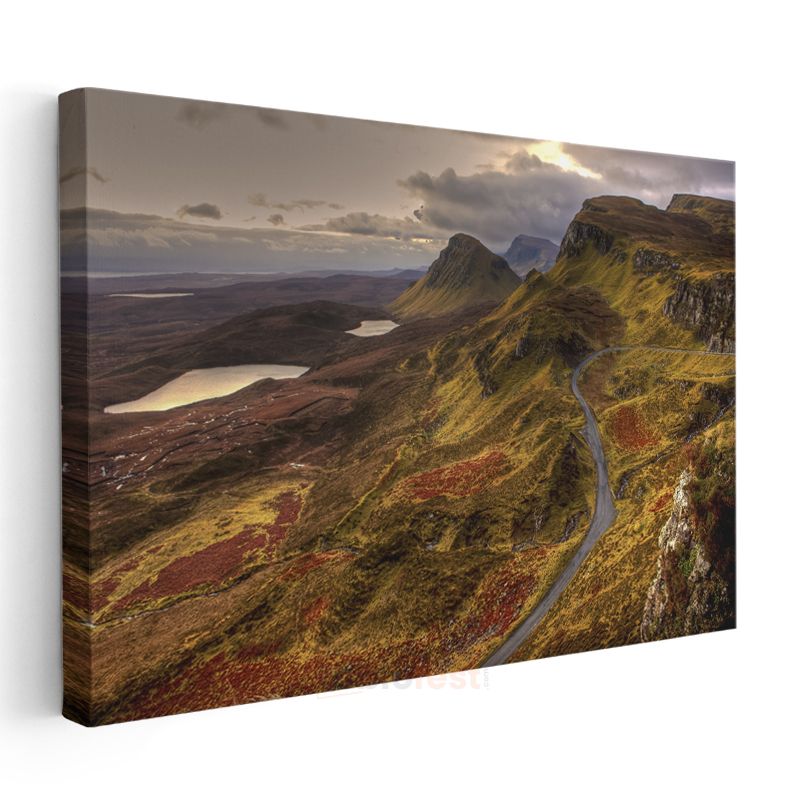 Dağ Yolu - Sonbahar Renklerine Bürünmüş Tepeler Kanvas Tablo