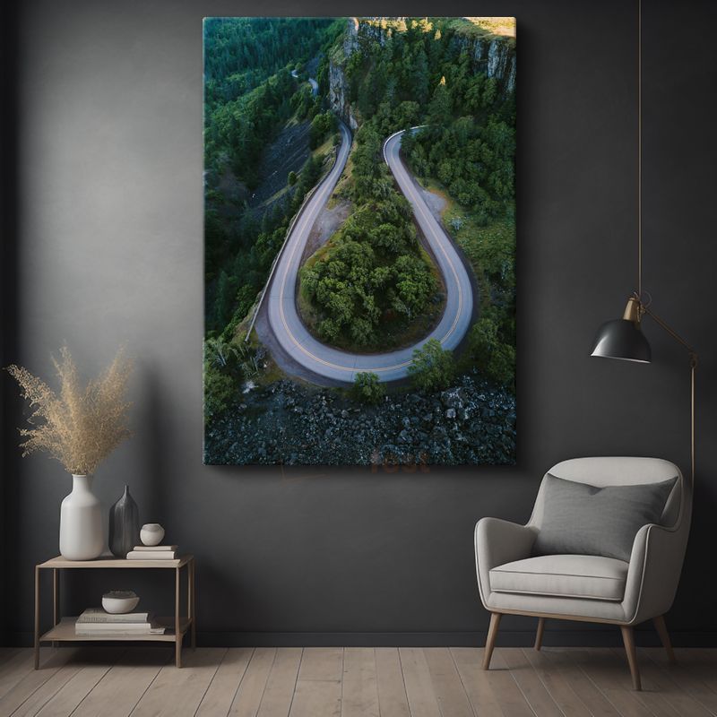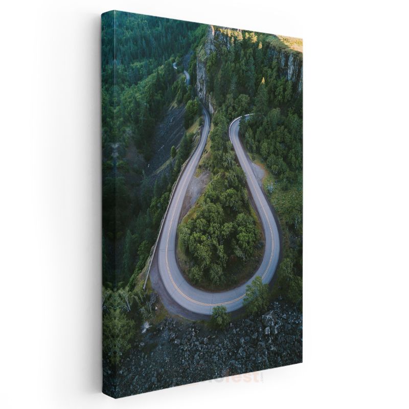 Dağ Yolu - Yeşil Ormanlar Arasında Kıvrılan Virajlı Patika Kanvas Tablo