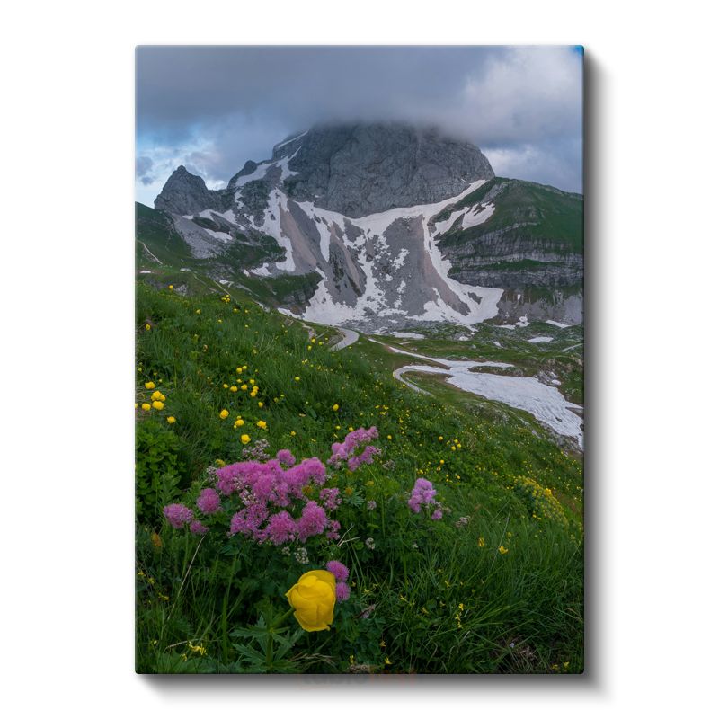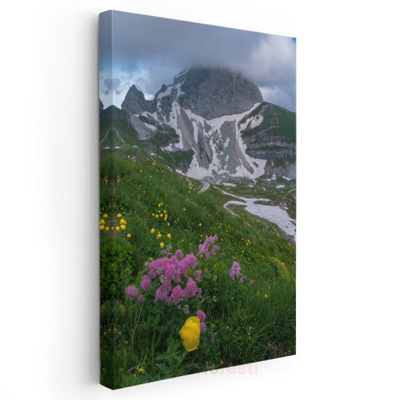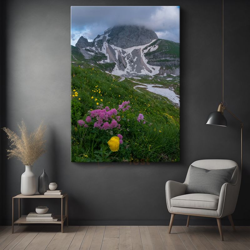 Dağ Zirvesi - Çiçekli Alpin Çayırlar Kanvas Tablo