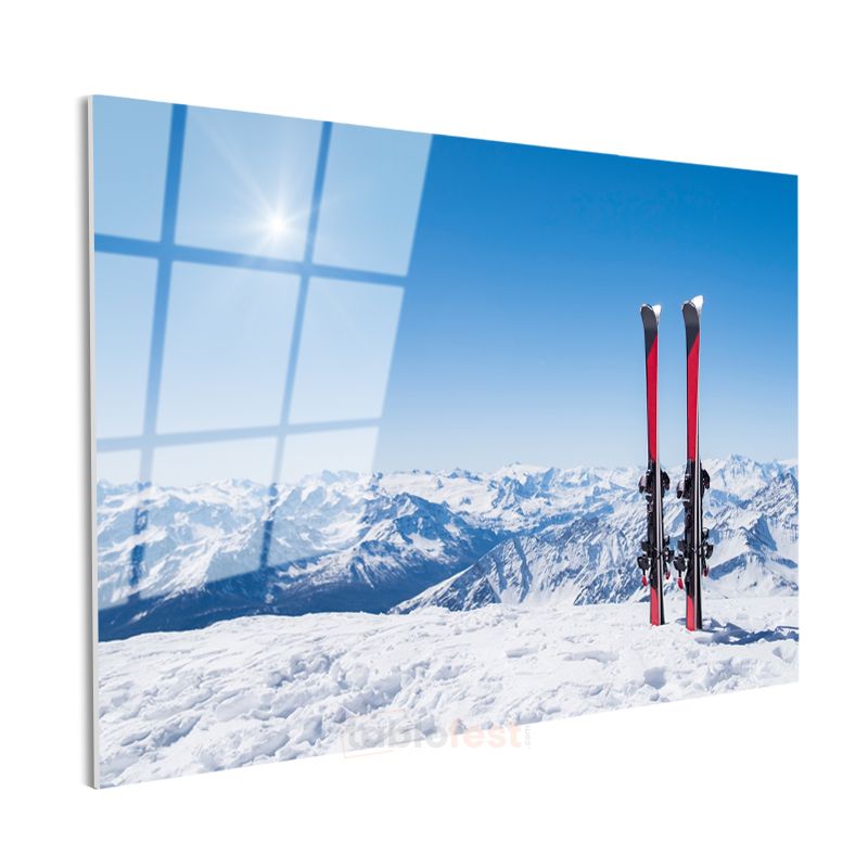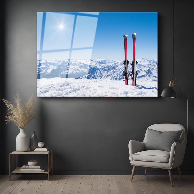 Dağ Zirvesi - Karlı Tepelerde Kayak Macerası Cam Tablo