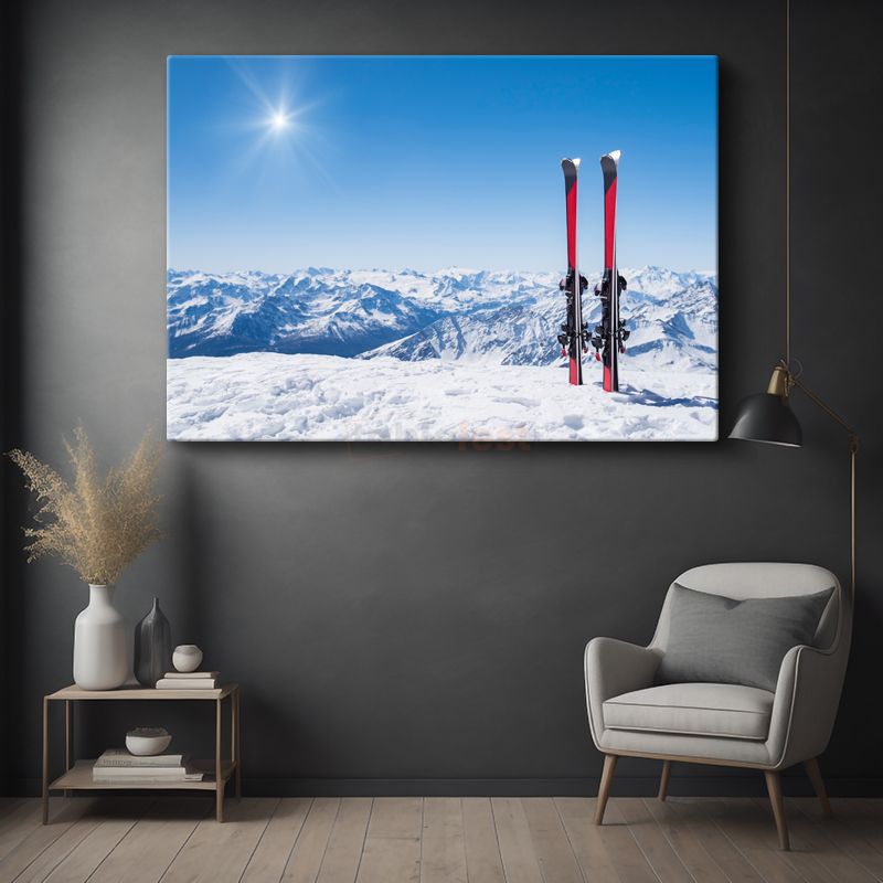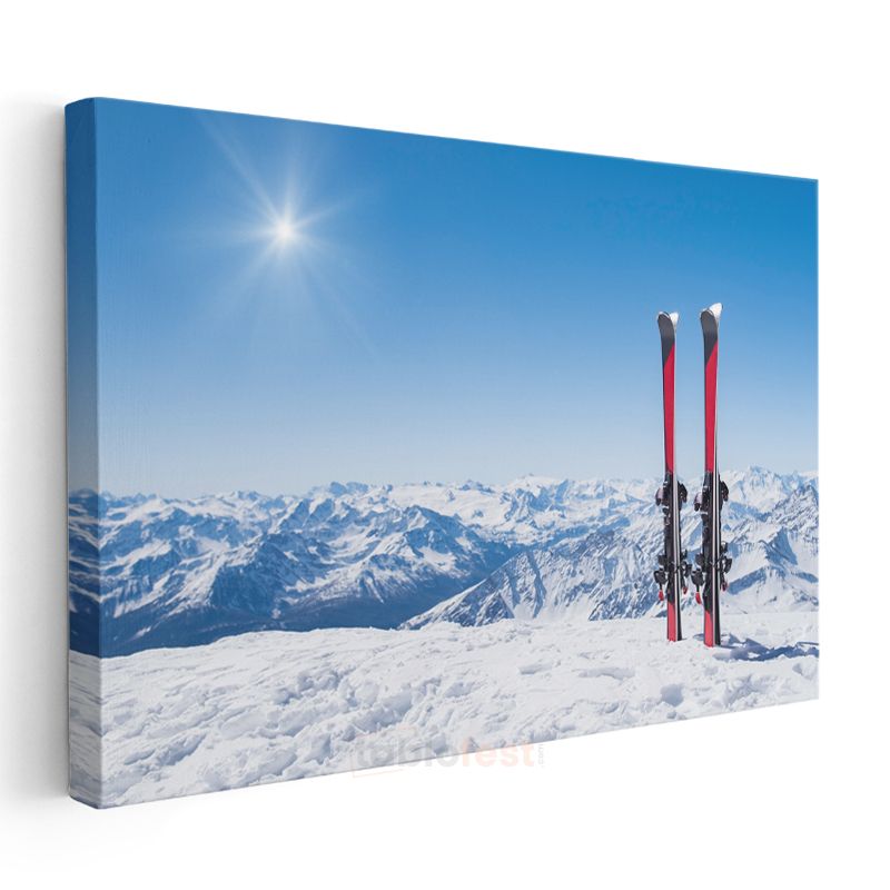 Dağ Zirvesi - Karlı Tepelerde Kayak Macerası Kanvas Tablo
