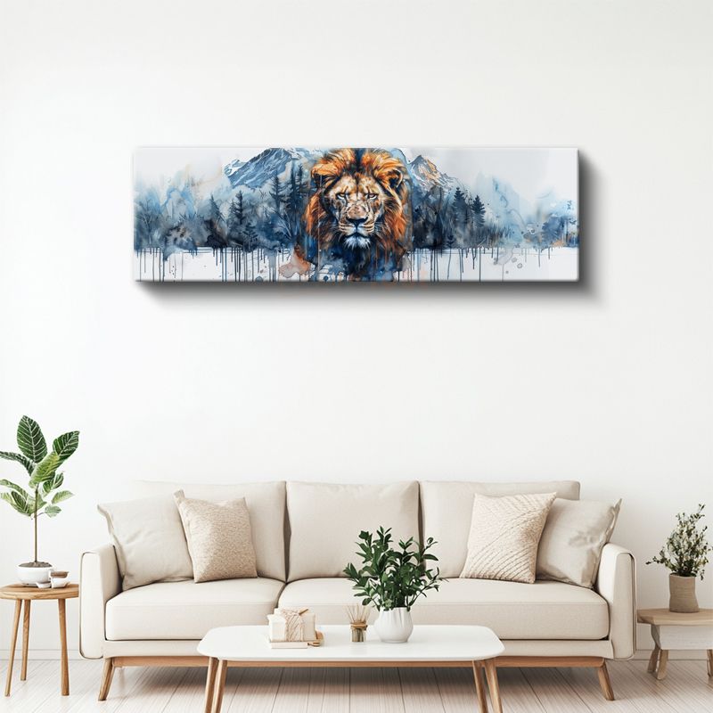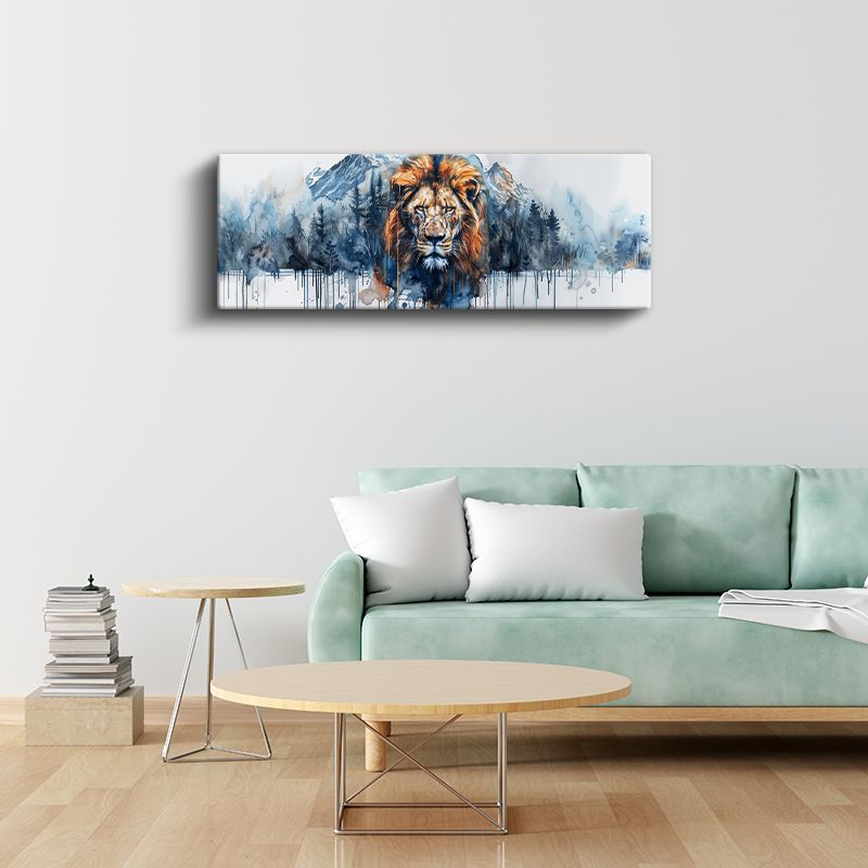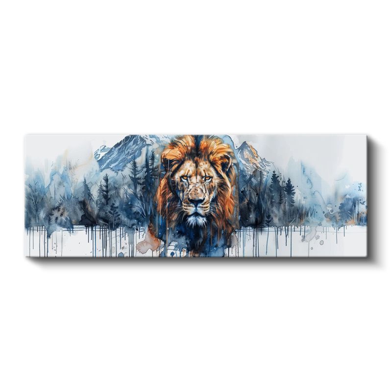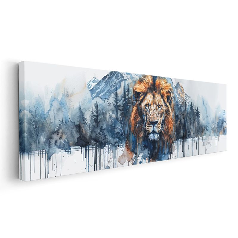 Dağların Aslanı - Suluboya Efektli Aslan Portresi Kanvas Tablo
